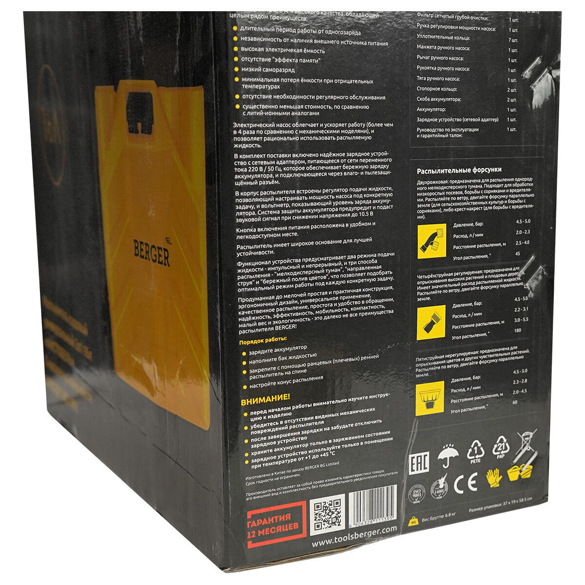 Распылитель садовый аккумуляторный/ручной 2в1 16л и 3 насадки в комплекте BERGER BG1993 интересное:
