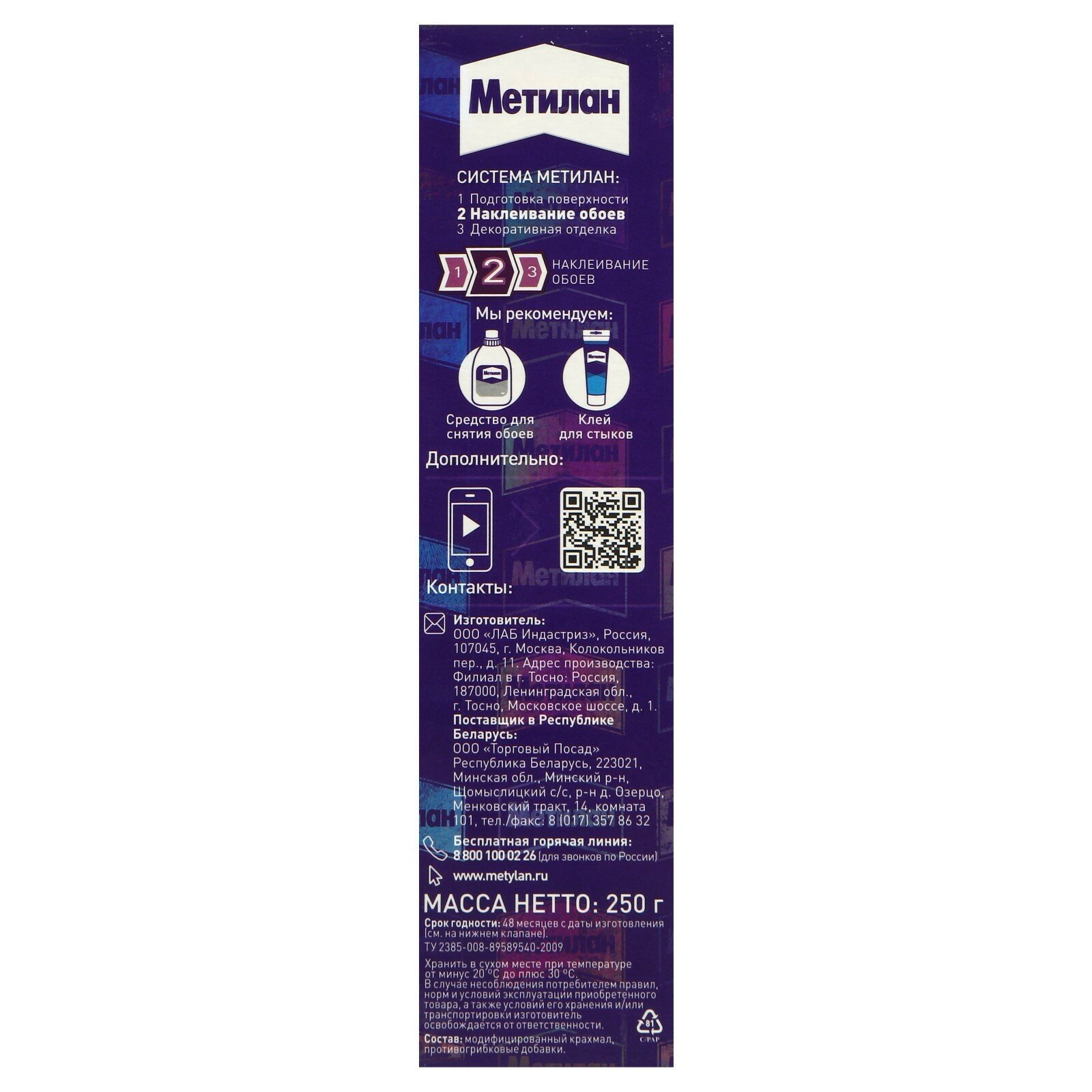 Метилан Универсал Премиум клей обойный (250г) / METYLAN Универсал Премиум клей бумажных обоев (0,25кг)
