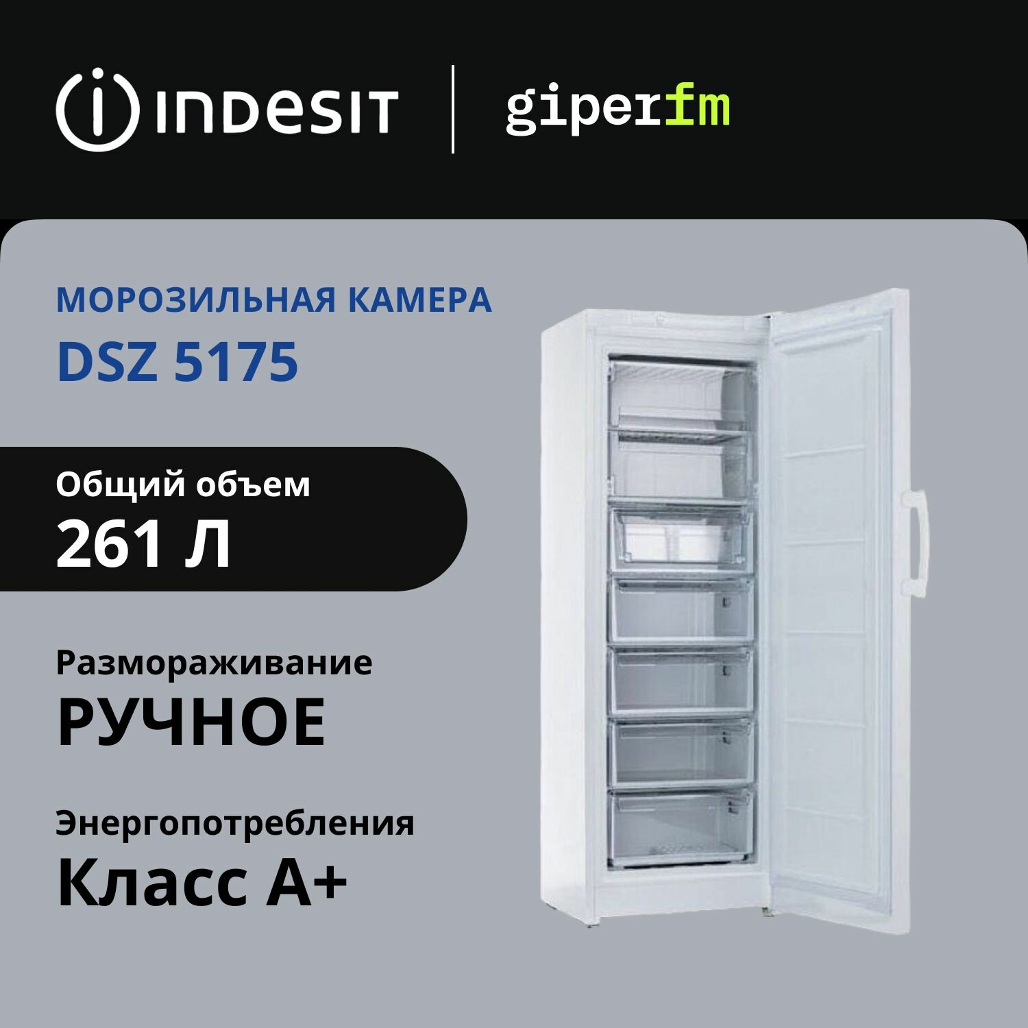 Морозильная камера Indesit DSZ 5175, 261 л, класс энергопотребления A+, 7 секций, ручное размораживание, белый интересное: