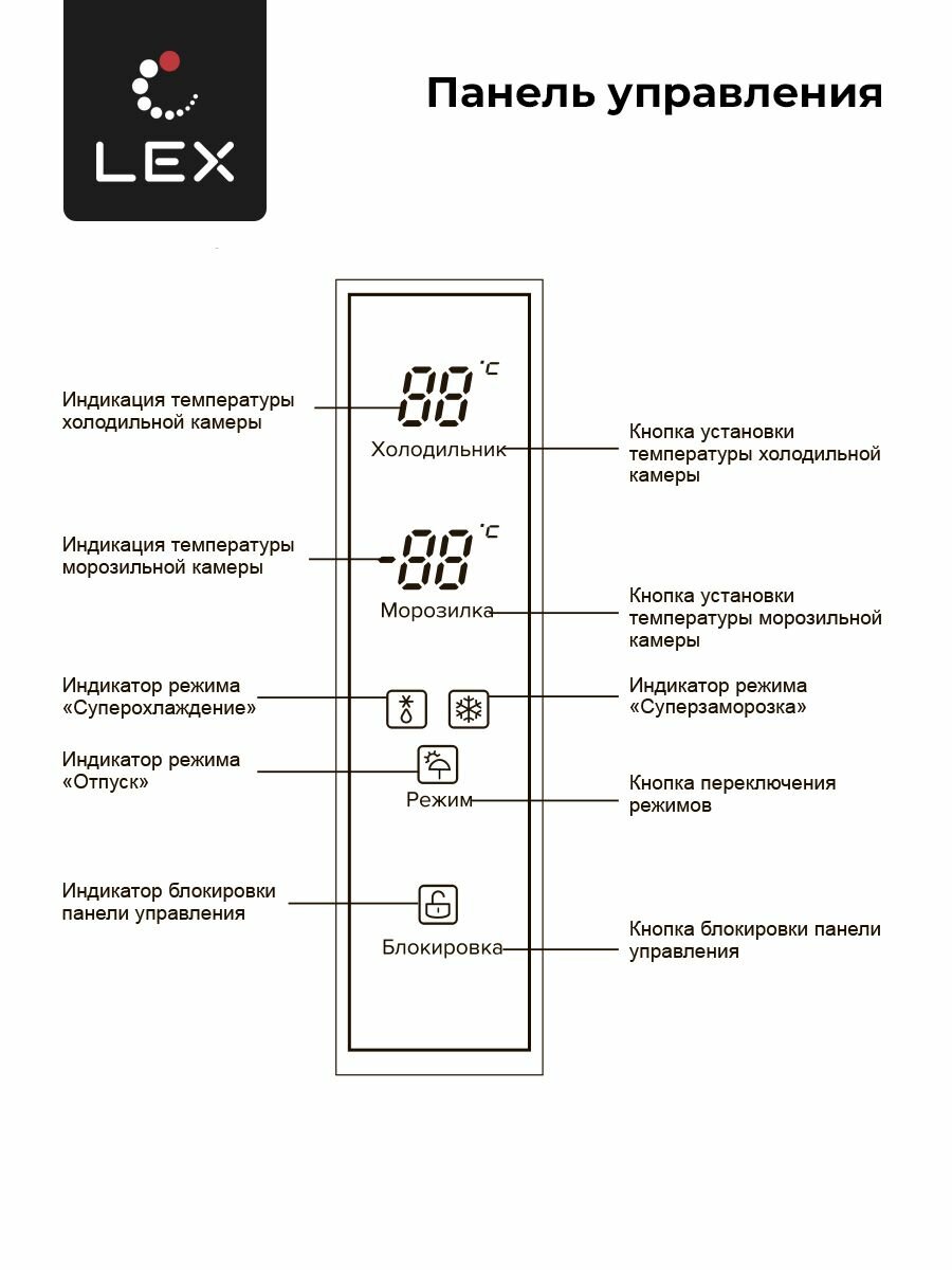 Холодильник трехкамерный отдельностоящий LEX LFD575BXID, Total NoFrost, Суперохлаждение, суперзаморозка, режим Отпуск , блокировка панели управления, электронное управление, ширина-91.1см.
