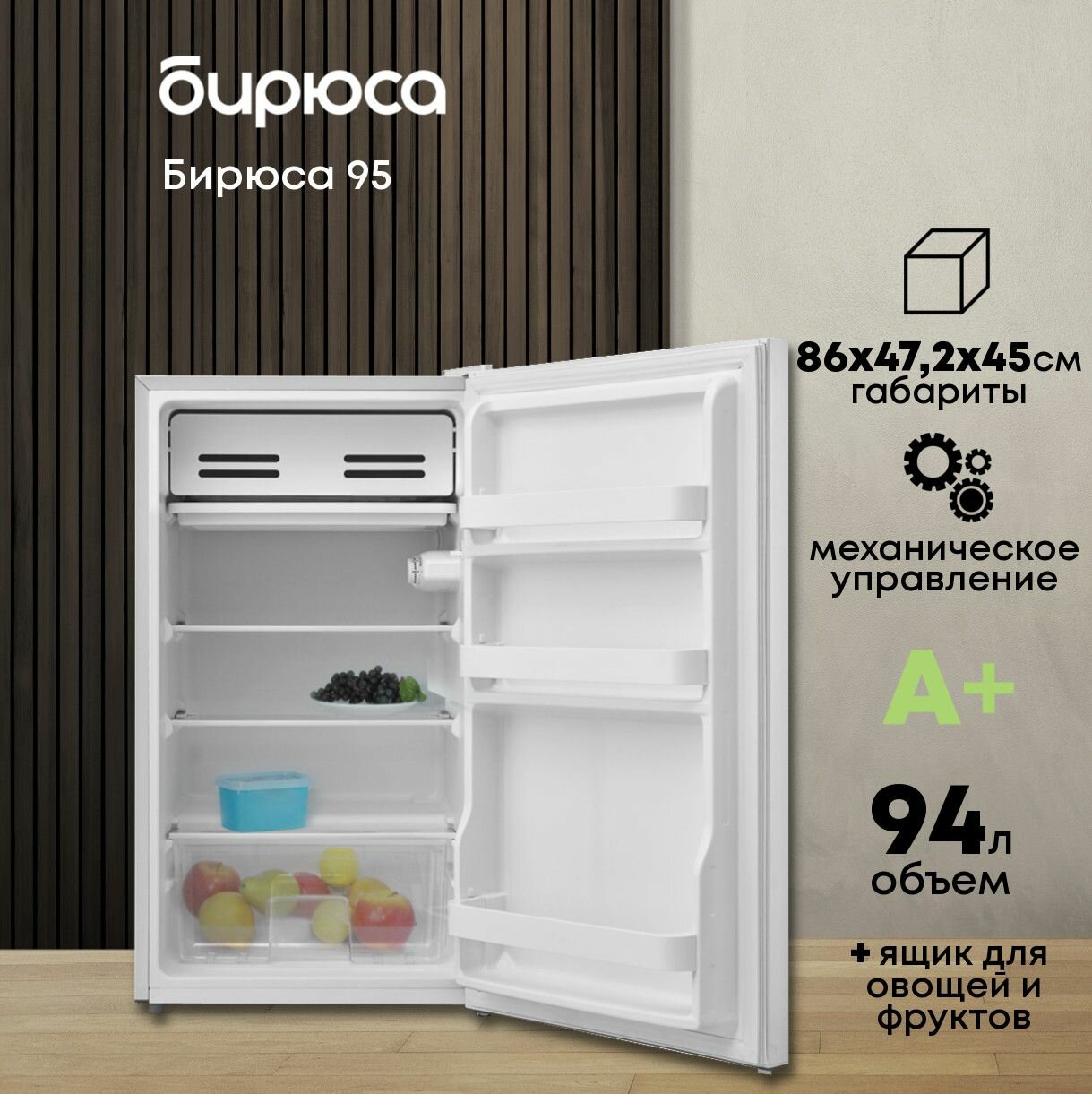 Холодильник Бирюса 95 бирюса. ручное размораживание, стандартный компрессор, класс энергоэффективности А+