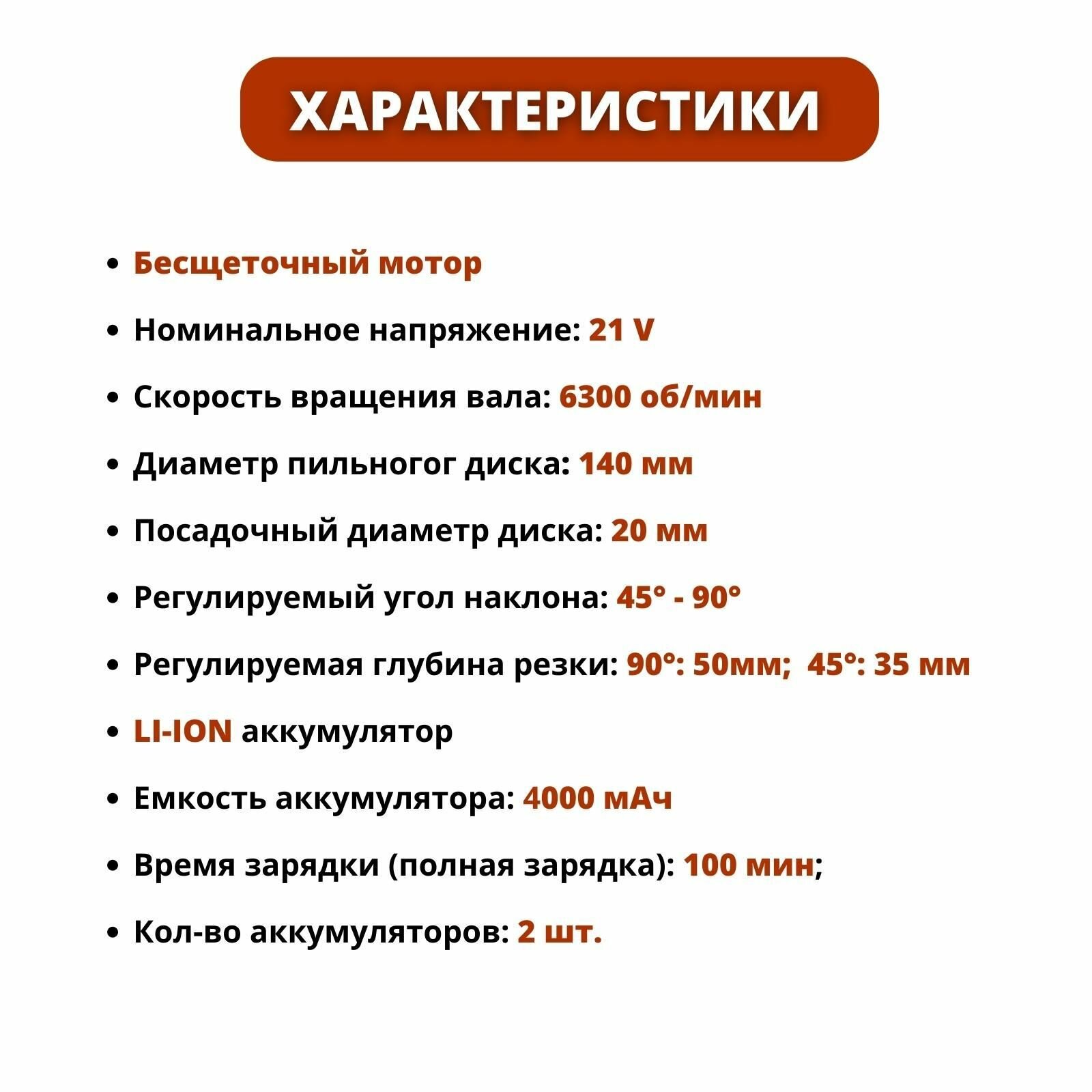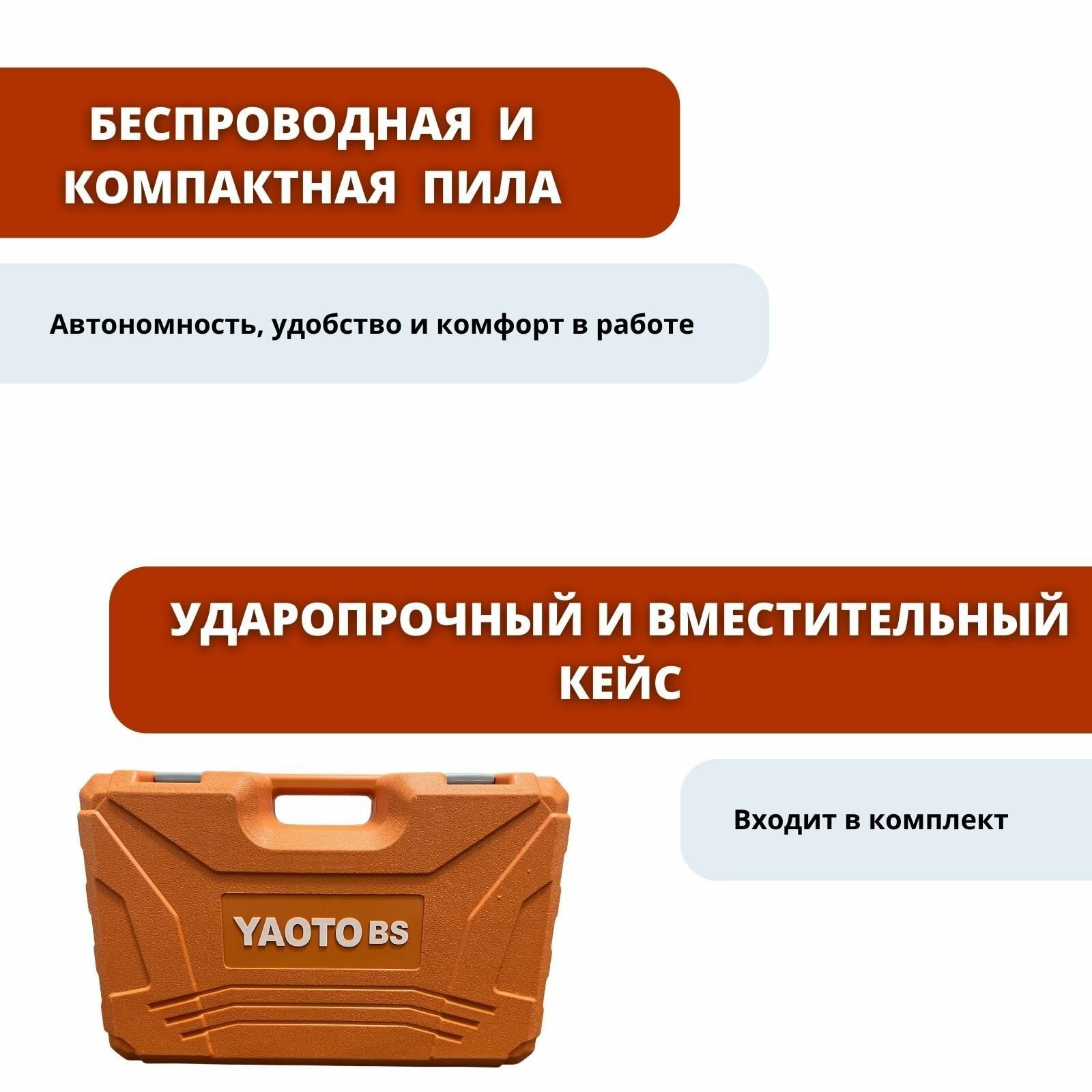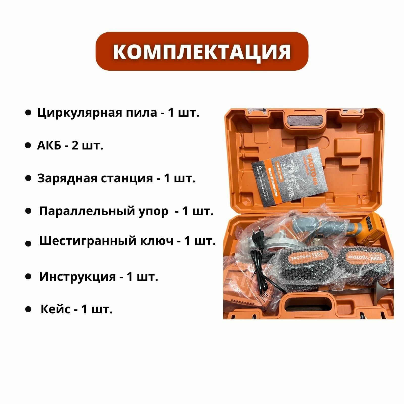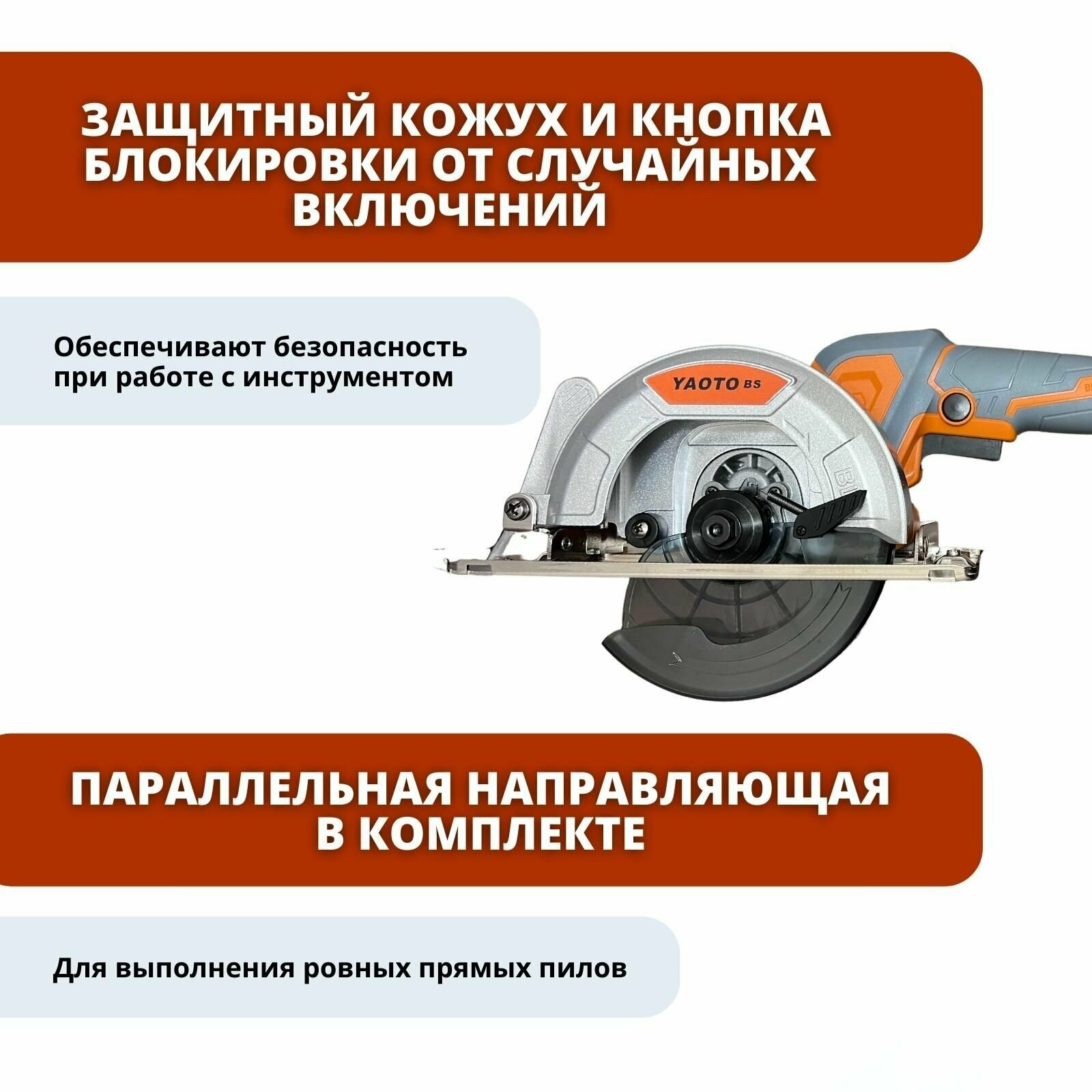 YAOTO BS 128Vf Пила бесщеточная дисковая циркулярная аккумуляторная, 21В, 2 АКБ LI-ION 4 Ач, 6300 об/мин интересное: