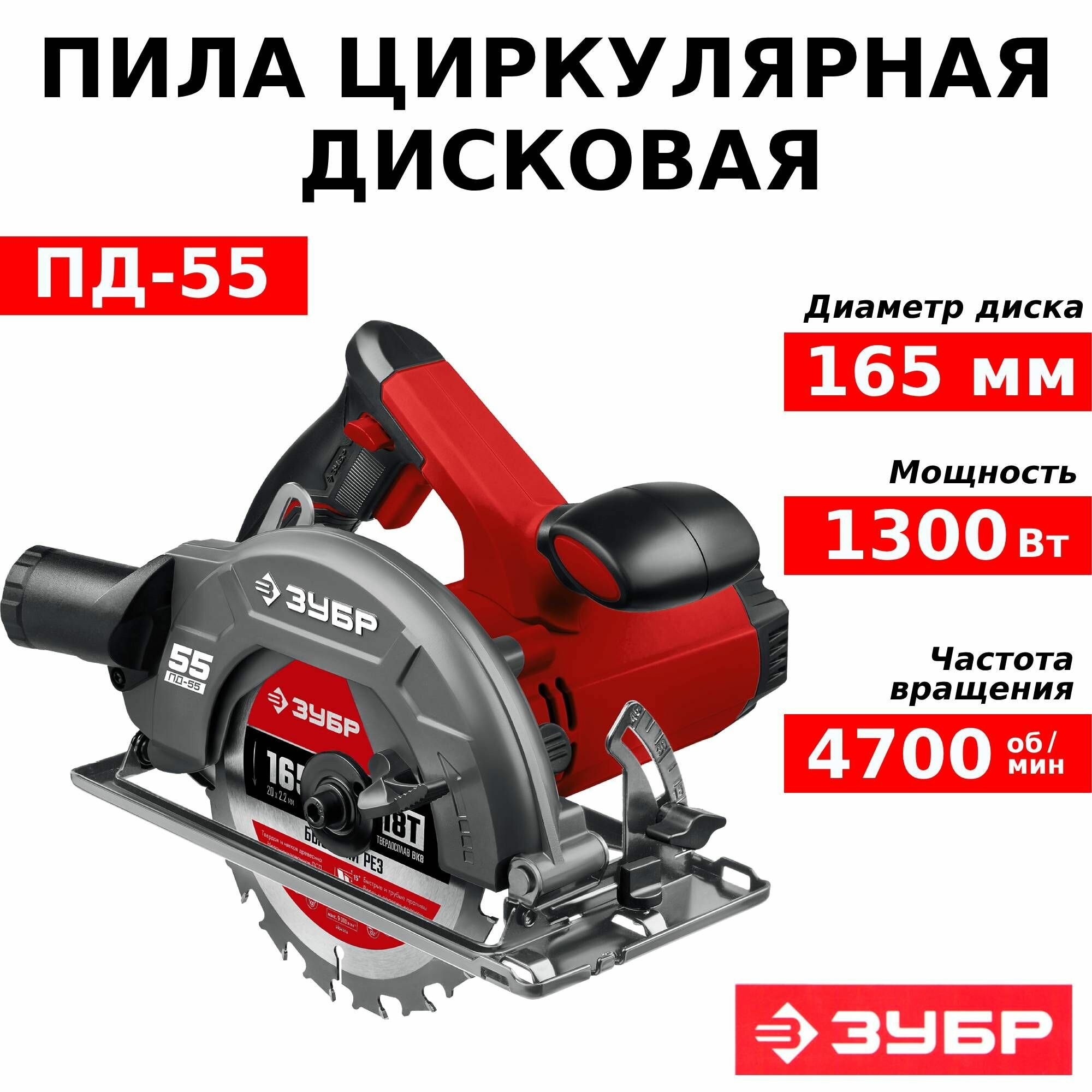 Пила дисковая ПД-65 мастер, ЗУБР 1600 ВТ, диск 190 ММ