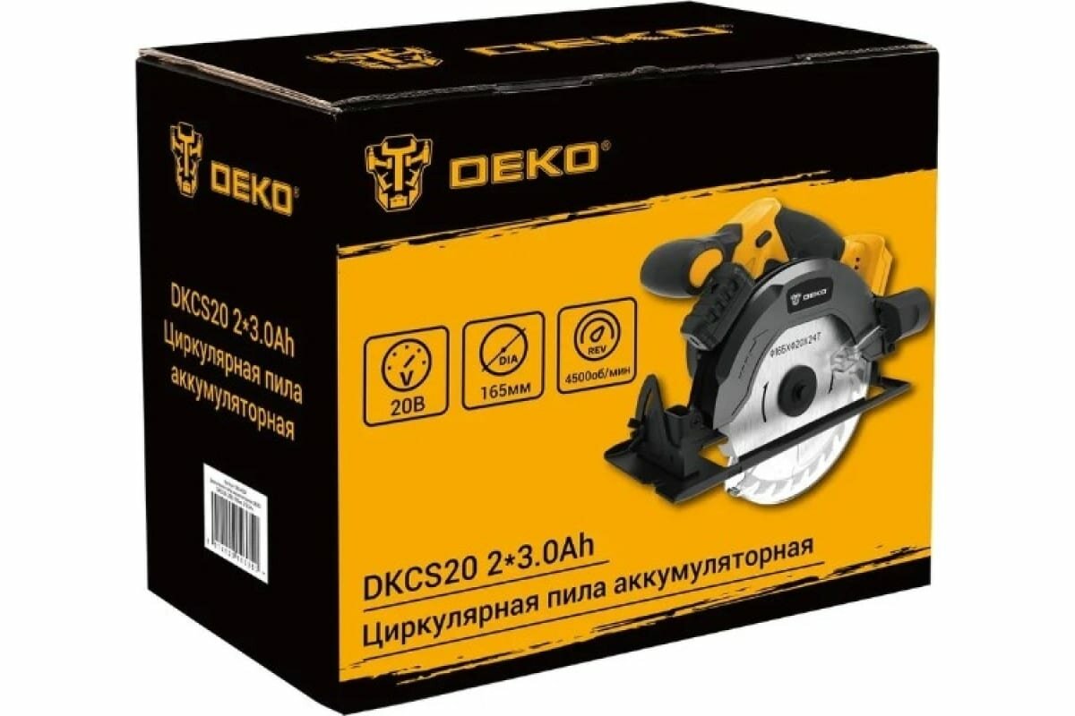 Пила циркулярная аккумуляторная Deko DKCS20, 2*20В 3.0Ач, 165мм интересное: