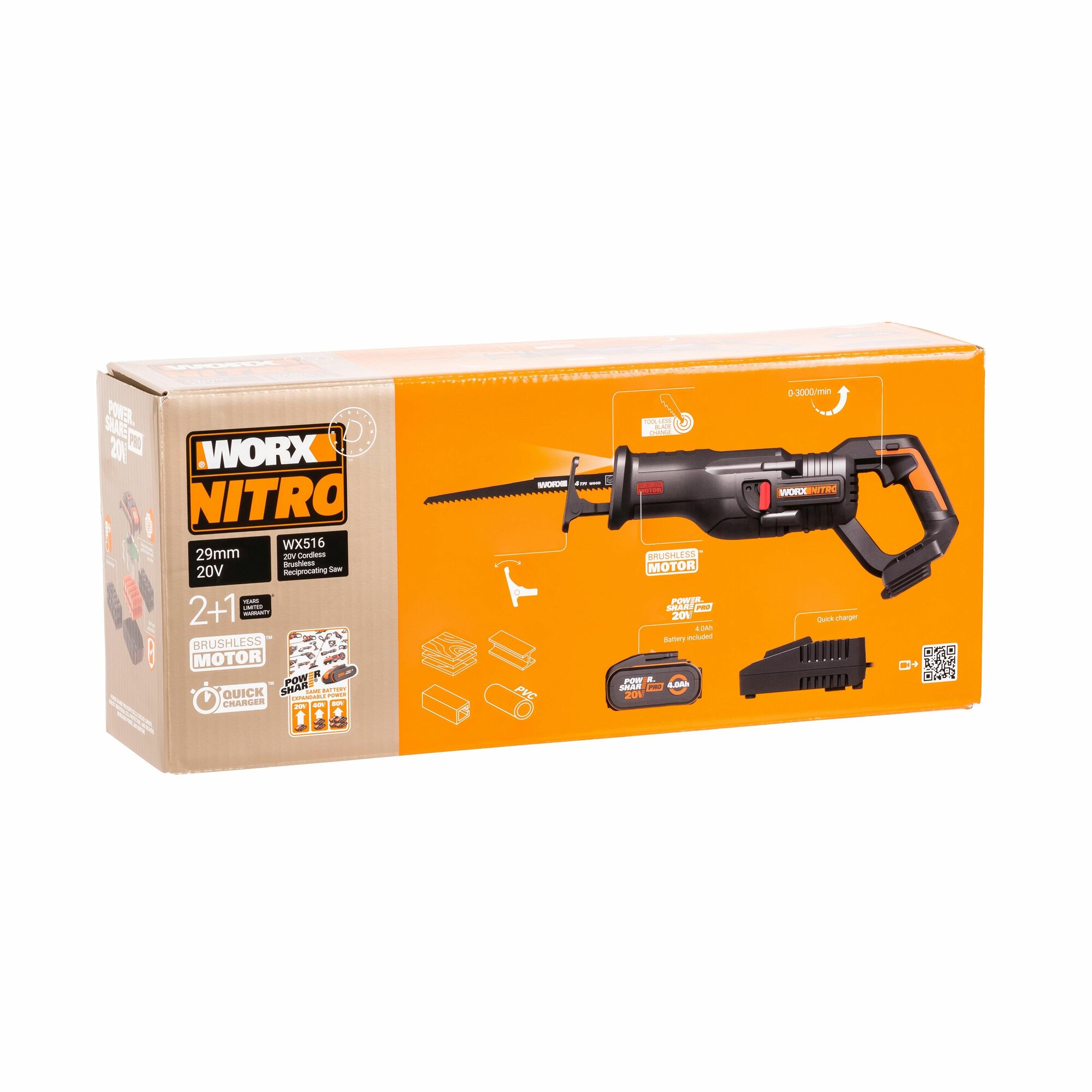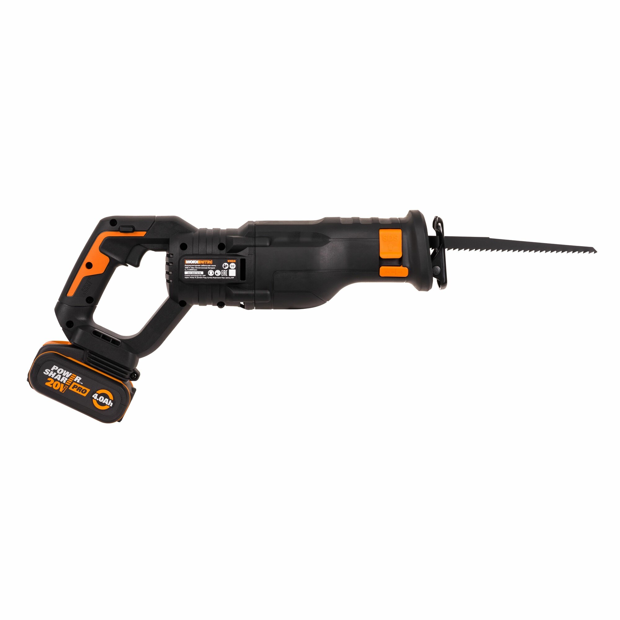 Купить Сабельная пила аккумуляторная бесщеточная WORX WX516, 20В, 4Ач х1, ЗУ 2А.