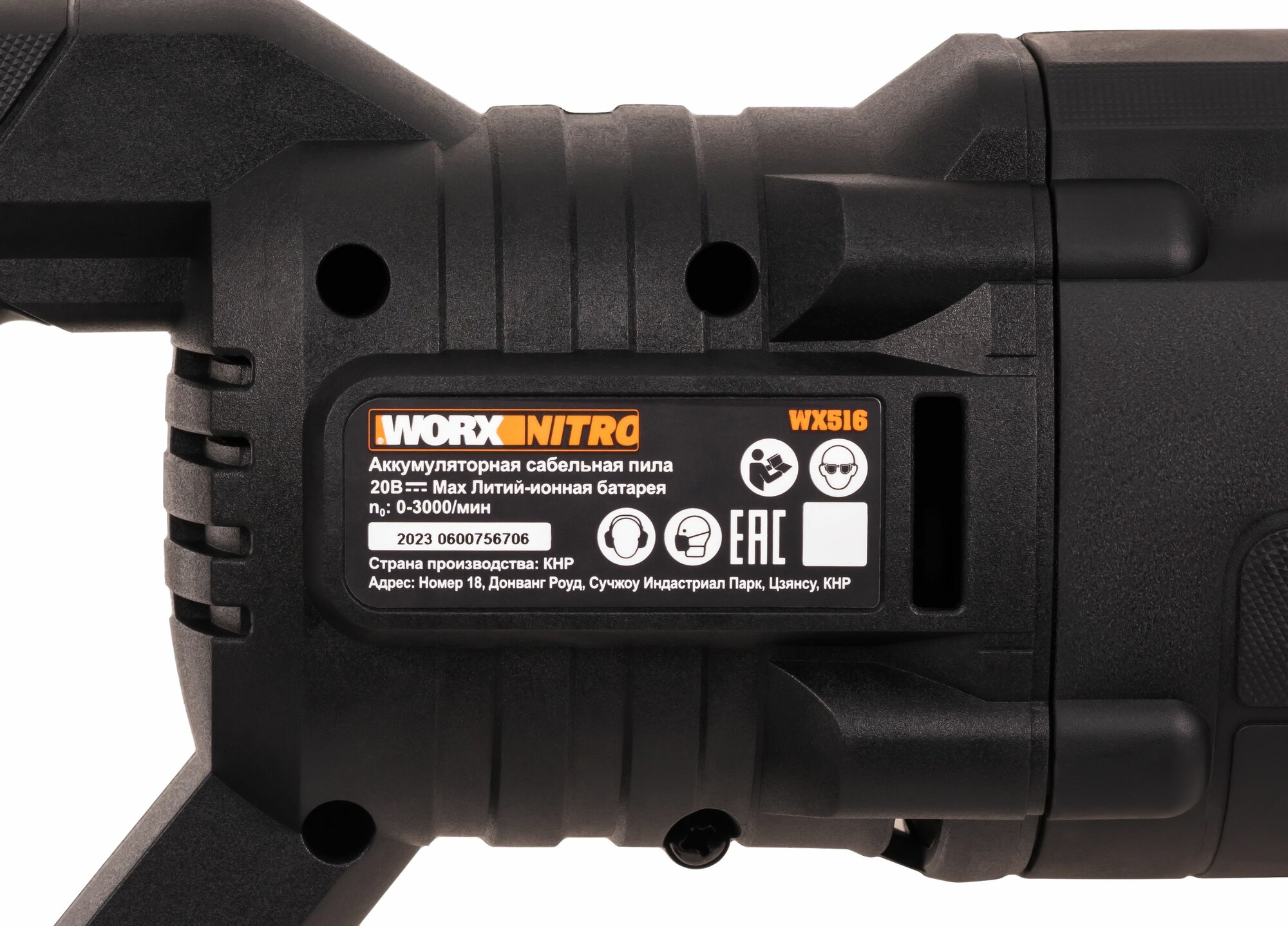 Сабельная пила аккумуляторная бесщеточная WORX WX516, 20В, 4Ач х1, ЗУ 2А. интересное: