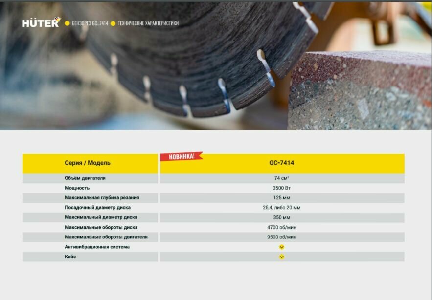 Ниже Вы можете прочитать отзывы на Бензорез Huter GC-7414, ознакомится с подробными характеристиками, посмотреть интересные обзоры и фотографии на Бензорез Huter GC-7414.