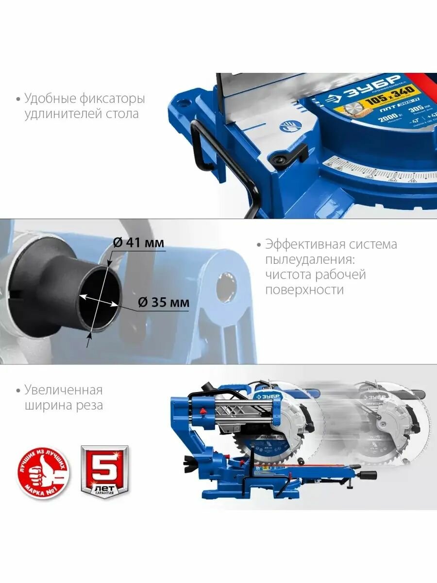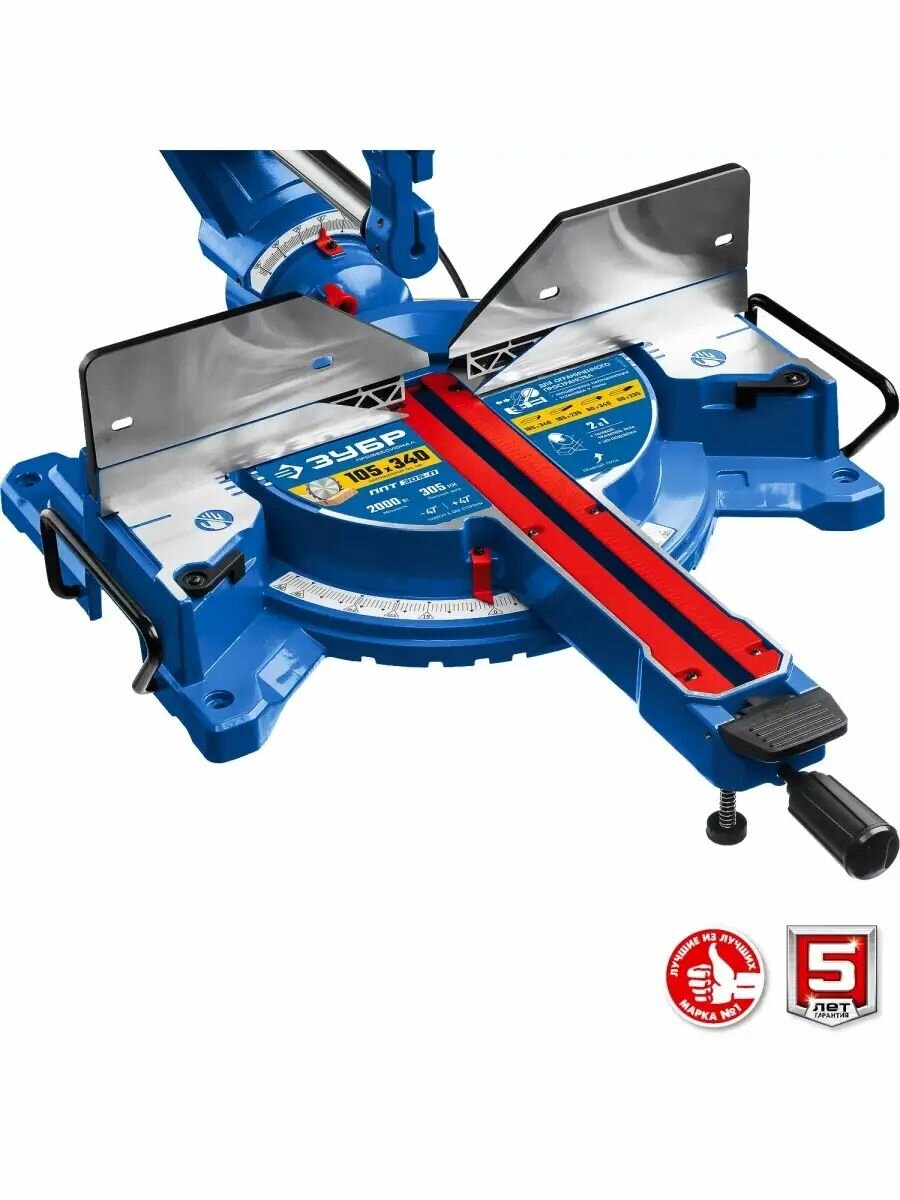 Торцовочная пила с протяжкой дисковая ЗУБР серия Профессионал, d 255х30 мм, 2000 Вт