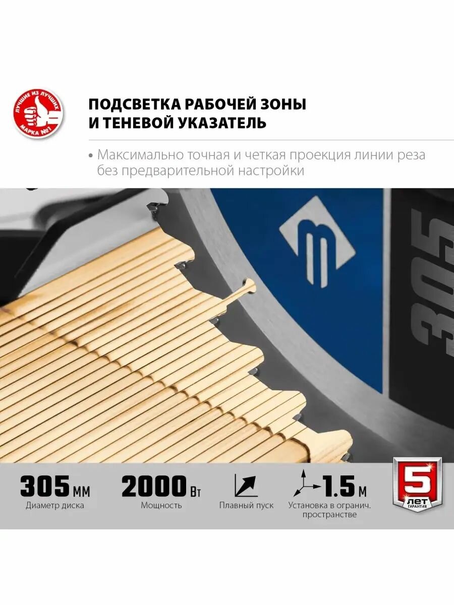 | Дополнительная информация | режим работы: S2, 30 мин., уровень звуковой мощности: 108 дБ, уровень звукового давления: 97 дБ; класс электрической безопасности: II класс; размеры пиления: под углом 90°/ 45° - 70 x 215 мм, под углом 45°/ 90° - 40 х 305 мм |