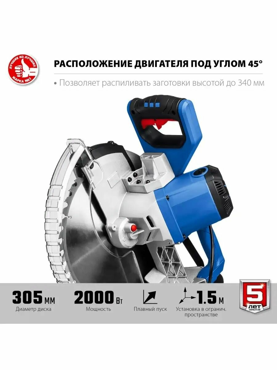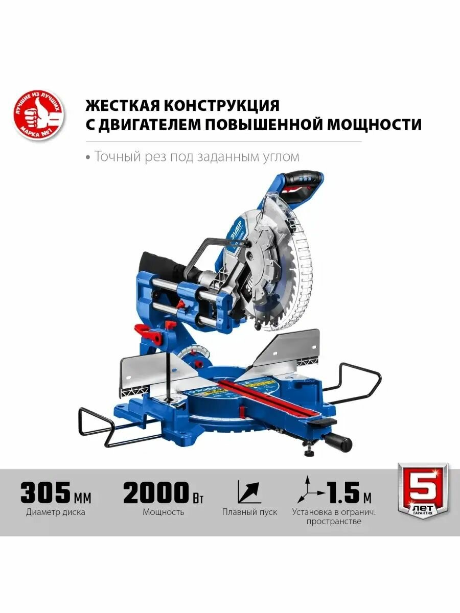 Купить Торцовочная пила с протяжкой дисковая ЗУБР серия Профессионал, d 305х30 мм, 2000 Вт