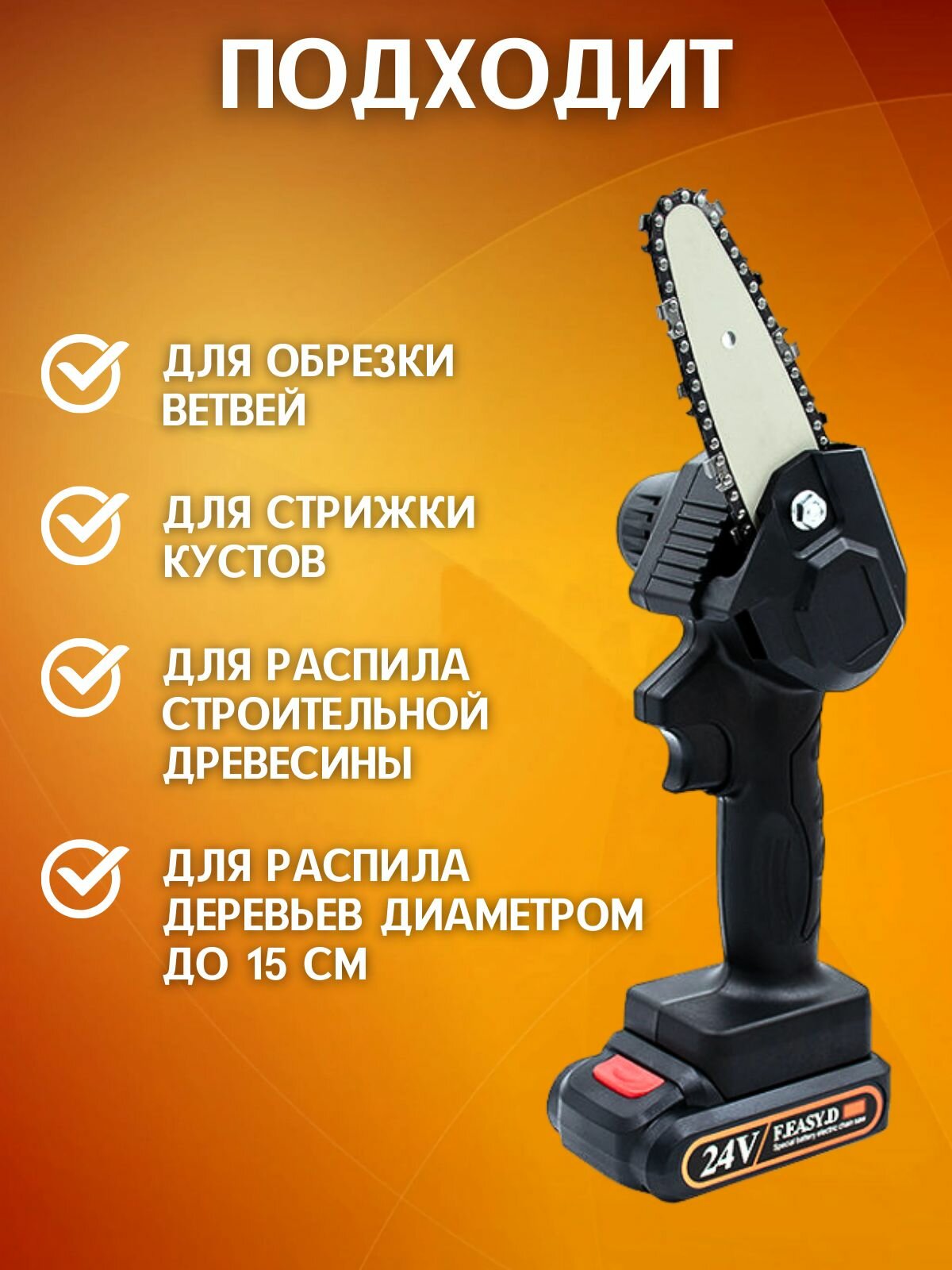 Купить Пила цепная аккумуляторная электрическая . Мини электропила ручная, инструмент для деревьев и кустов
