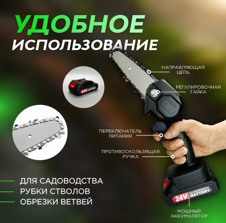 Аккумуляторная мини-пила цепная, 24 В интересное: