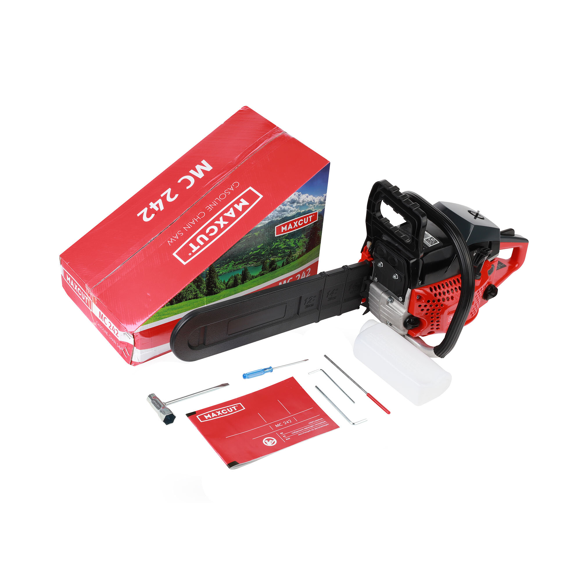 | Комплект поставки | Бензопила в сборе, пильная цепь, направляющая шина, канистра для приготовления топливной смеси, защитный кожух, инструкция |