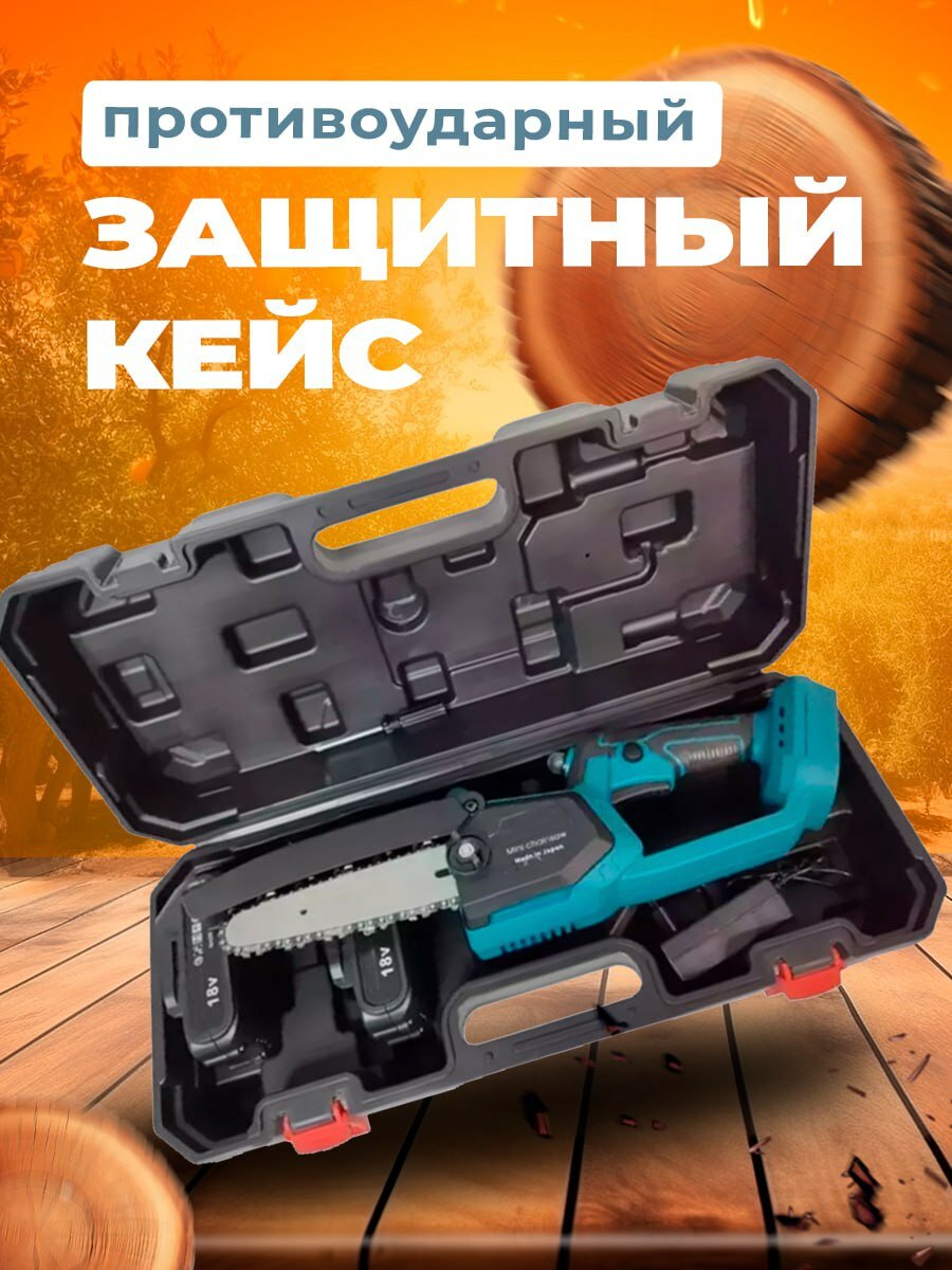 Пила цепная аккумуляторная 200мм 2 аккумулятора в комплекте, кейс для хранения интересное: