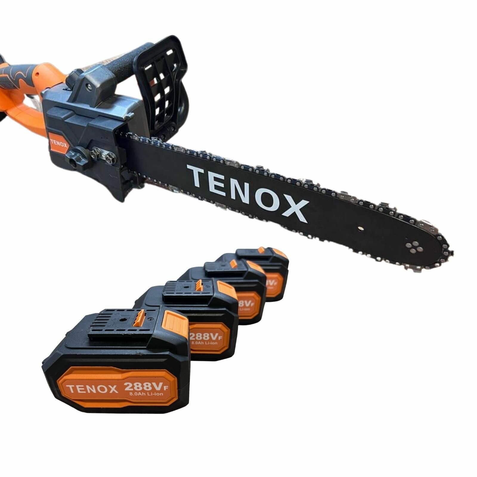Купить TENOX Шина 16 дюймов, Пила бесщеточная цепная аккумуляторная электрическая, 21В, 4 АКБ LI-ION, 8 Ач, Садовая электропила