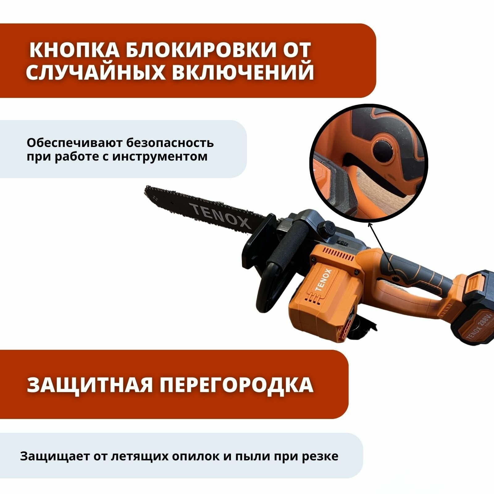 TENOX Шина 16 дюймов, Пила бесщеточная цепная аккумуляторная электрическая, 21В, 4 АКБ LI-ION, 8 Ач, Садовая электропила интересное: