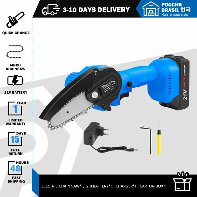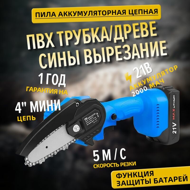 Пила аккумуляторная цепная , PROSTORMER, PTET007A, 21 в, 4 дюйма, Литиевые батареи 2000 MAH*1, для резки дерева, для садоводства интересное: