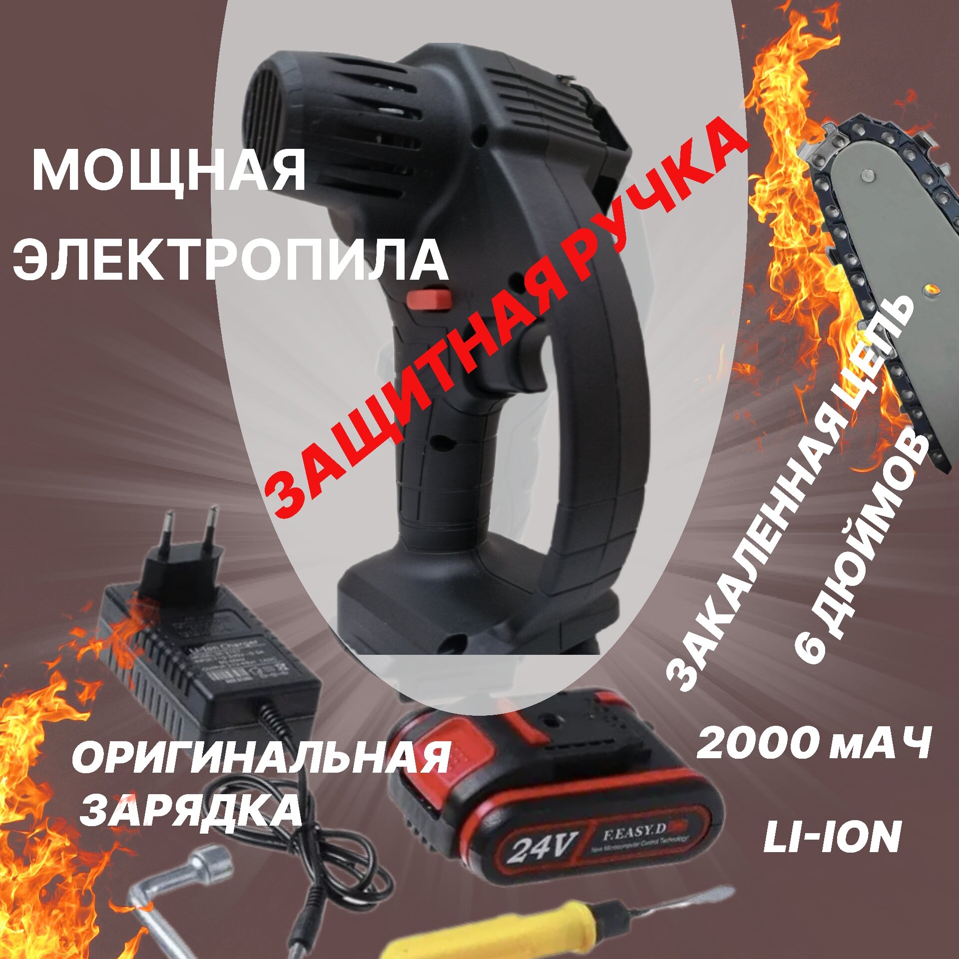 Купить Цепная аккумуляторная пила защитная ручка/ Электропила 24V / Мини пила для строительства и садоводства /кусторез сучкорез /Режущий инструмент