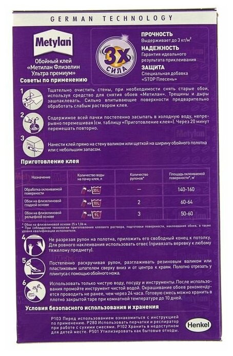 Обойный клей METYLAN (HENKEL) Metylan флизелин Ультра Премиум, 250 г