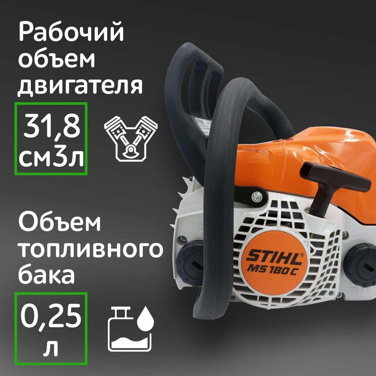 Бензопила STIHL оригинал MS 180 С-BE шина R 35 см/14" цепь 63PM интересное: