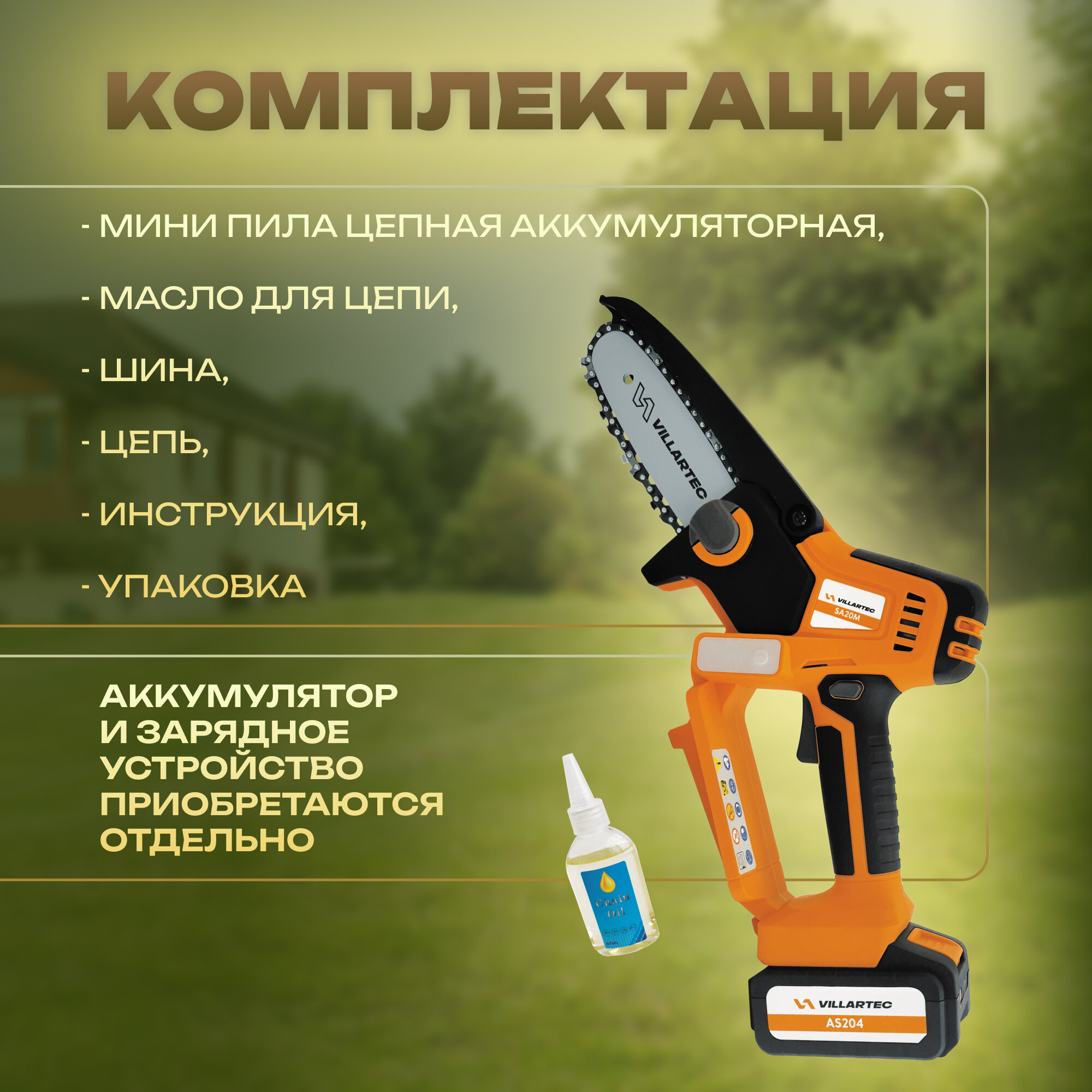 Мини пила цепная аккумуляторная, секатор садовый 20 В / VILLARTEC SA20M интересное: