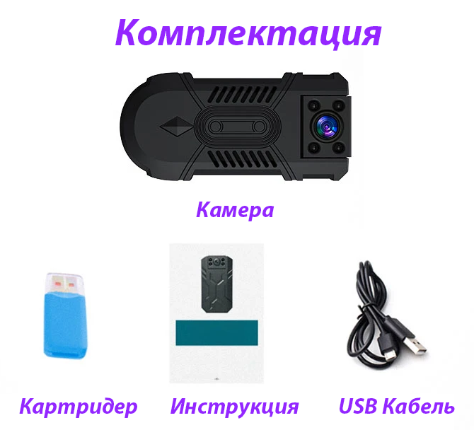 | Комплектация | Камера, картридер, usb кабель, инструкция |