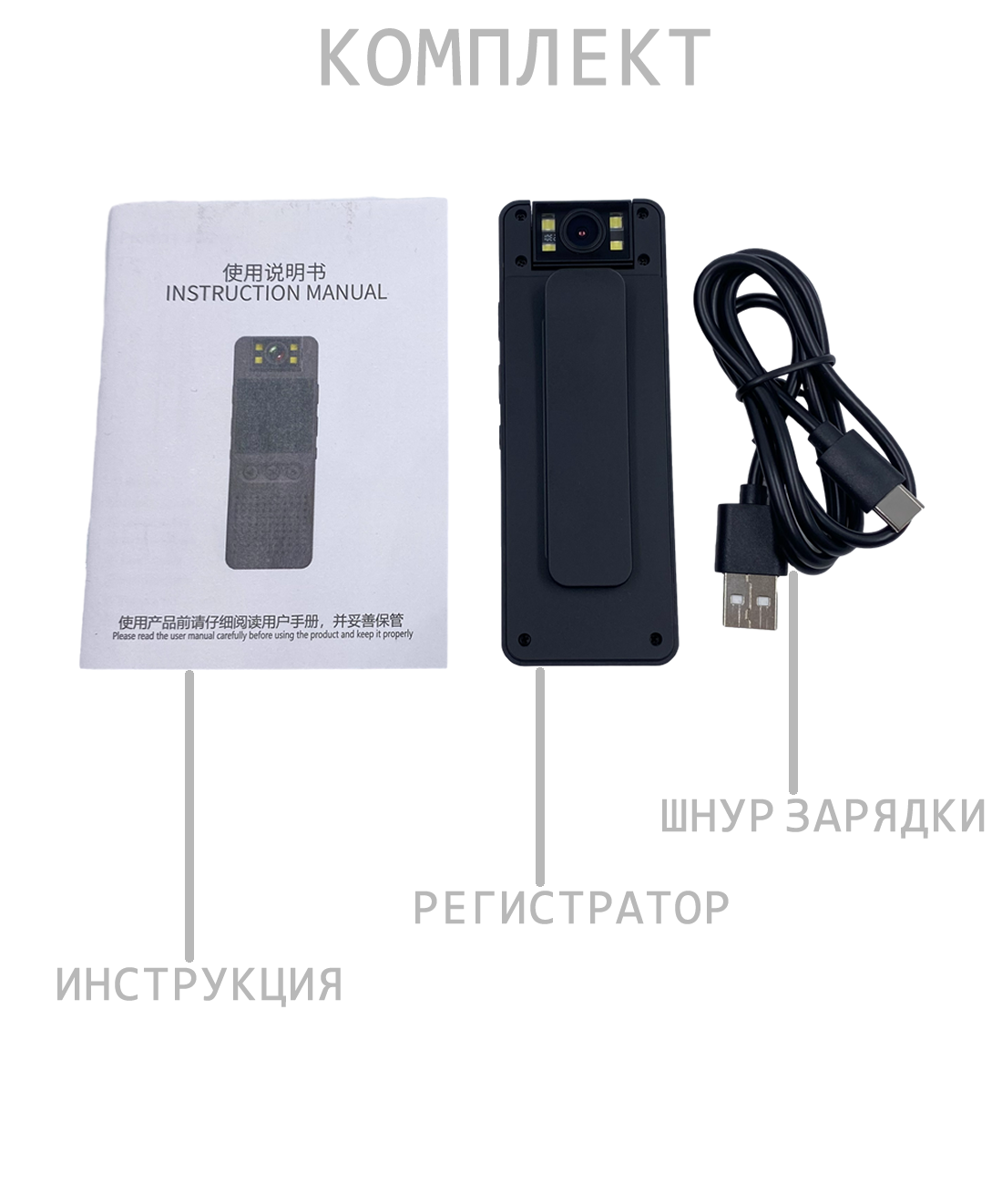 | Комплектация | Регистратор, инструкция, кабель для зарядки |