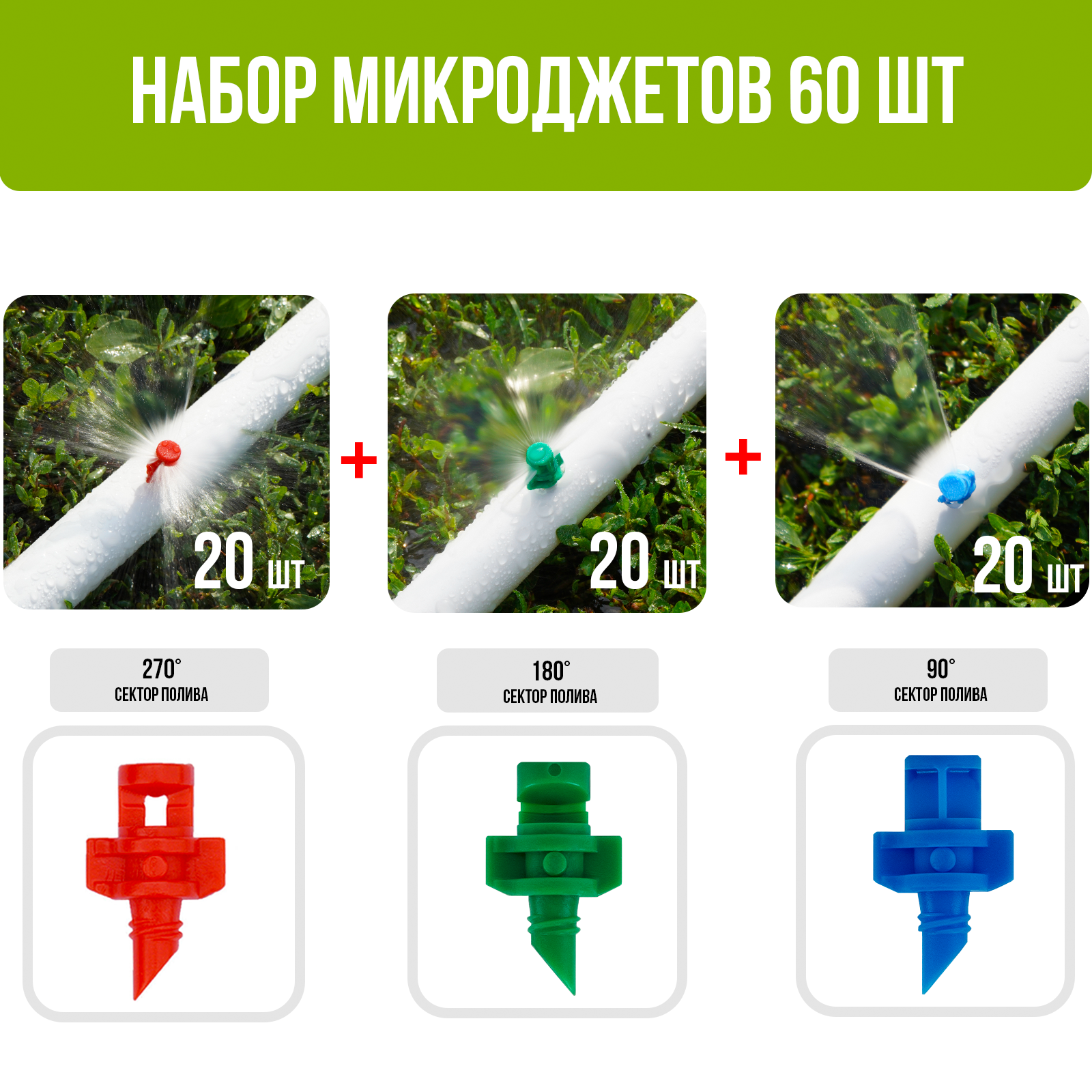Набор микроджетов, форсунок для полива, сектор полива 90, 180, 270 градусов. Комплект 60 шт. интересное: