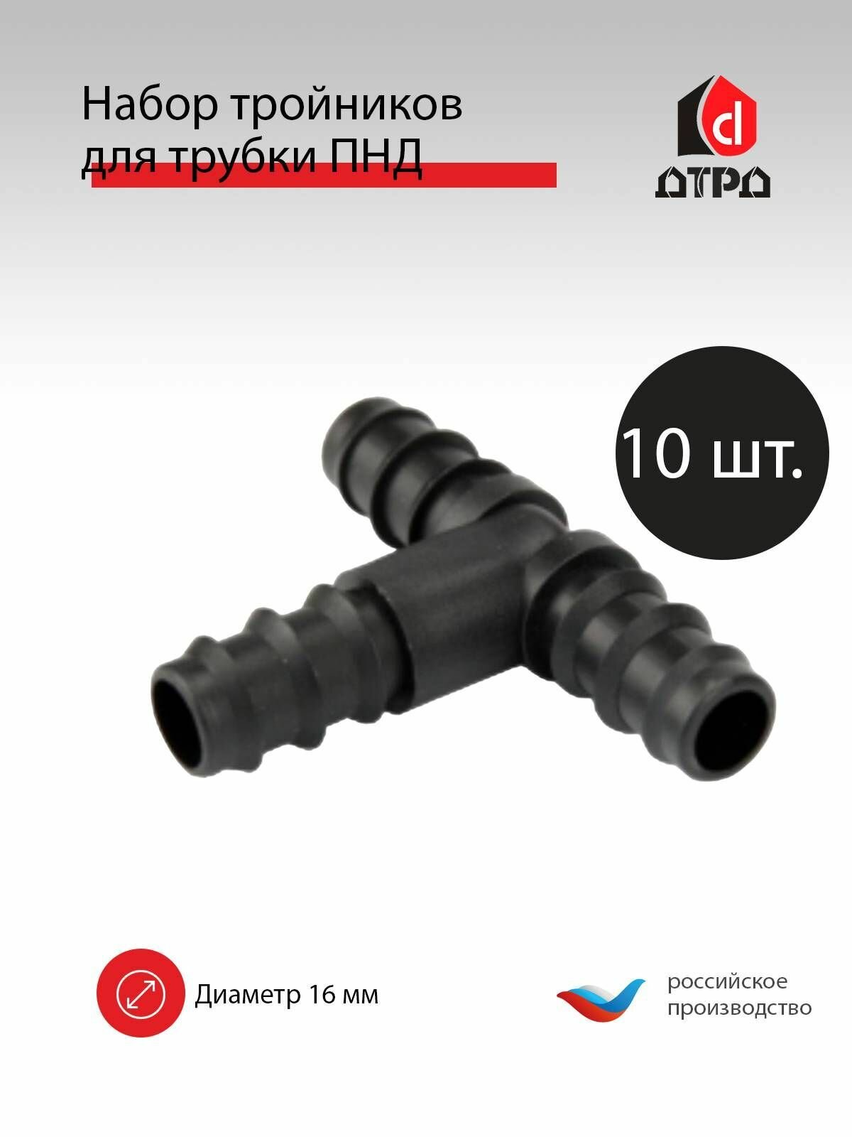 Тройник 16х16х16 мм для трубки ПНД 16 мм TUBOFLEX - 10 шт. Элемент комплекта капельного полива для формирования систем полива. интересное: