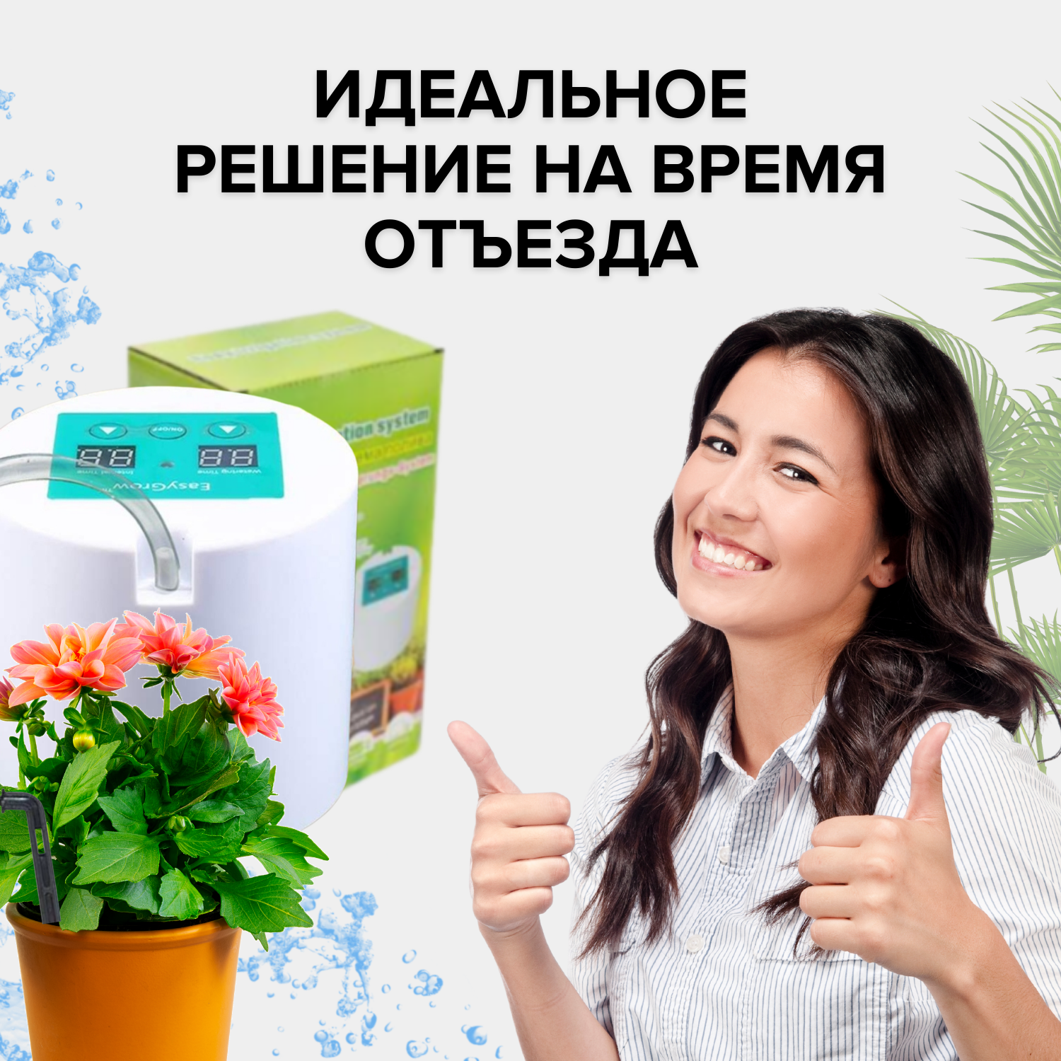 Автополив для комнатных растений на 10 капельниц от батареек с контроллером (таймером), капельный полив для домашних цветов интересное: