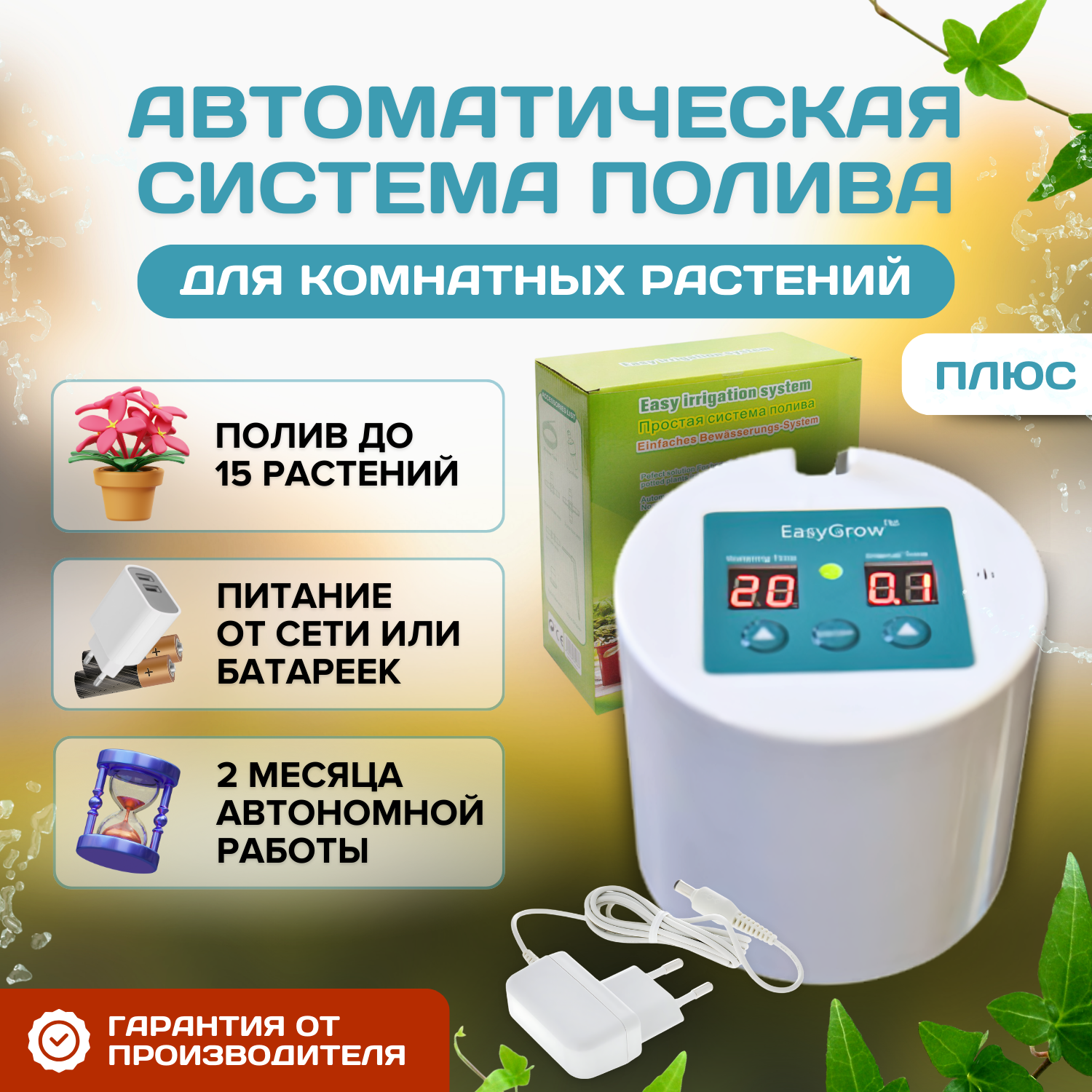 Купить Автополив для комнатных растений на 15 капельниц от сети и батареек с контроллером (таймером), капельный полив для домашних цветов