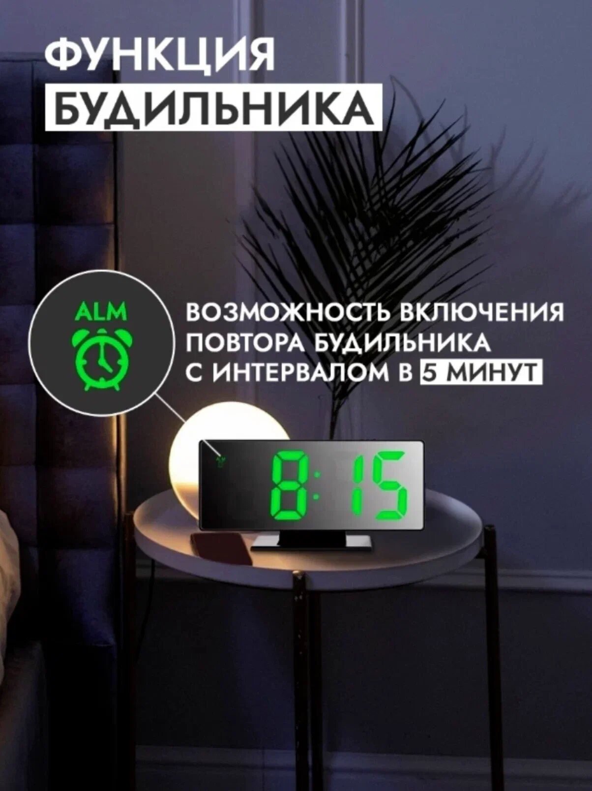 Настольные электронные часы-будильник, с календарем и термометром, зеркальный дисплей