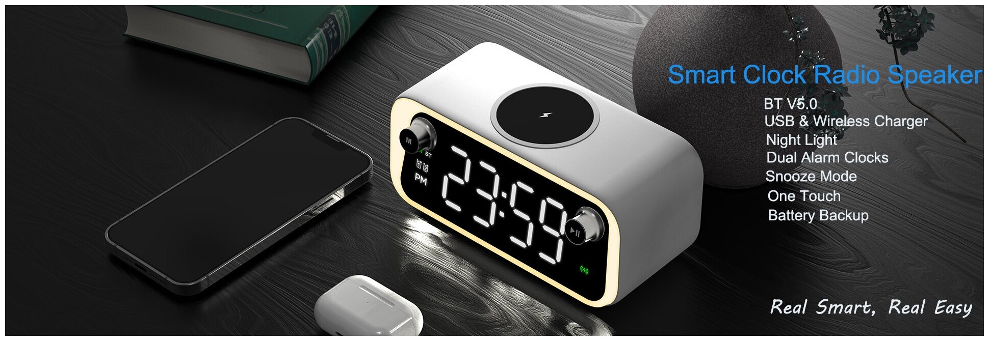 Купить Настольные электронные часы-будильник MIRRON A575/ Беспроводная зарядка/ Дом/ Интерьер
