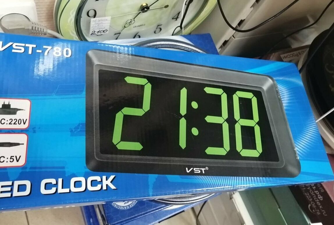 Настольно-настенные электронные часы VST 780 с большими зелеными цифрами интересное: