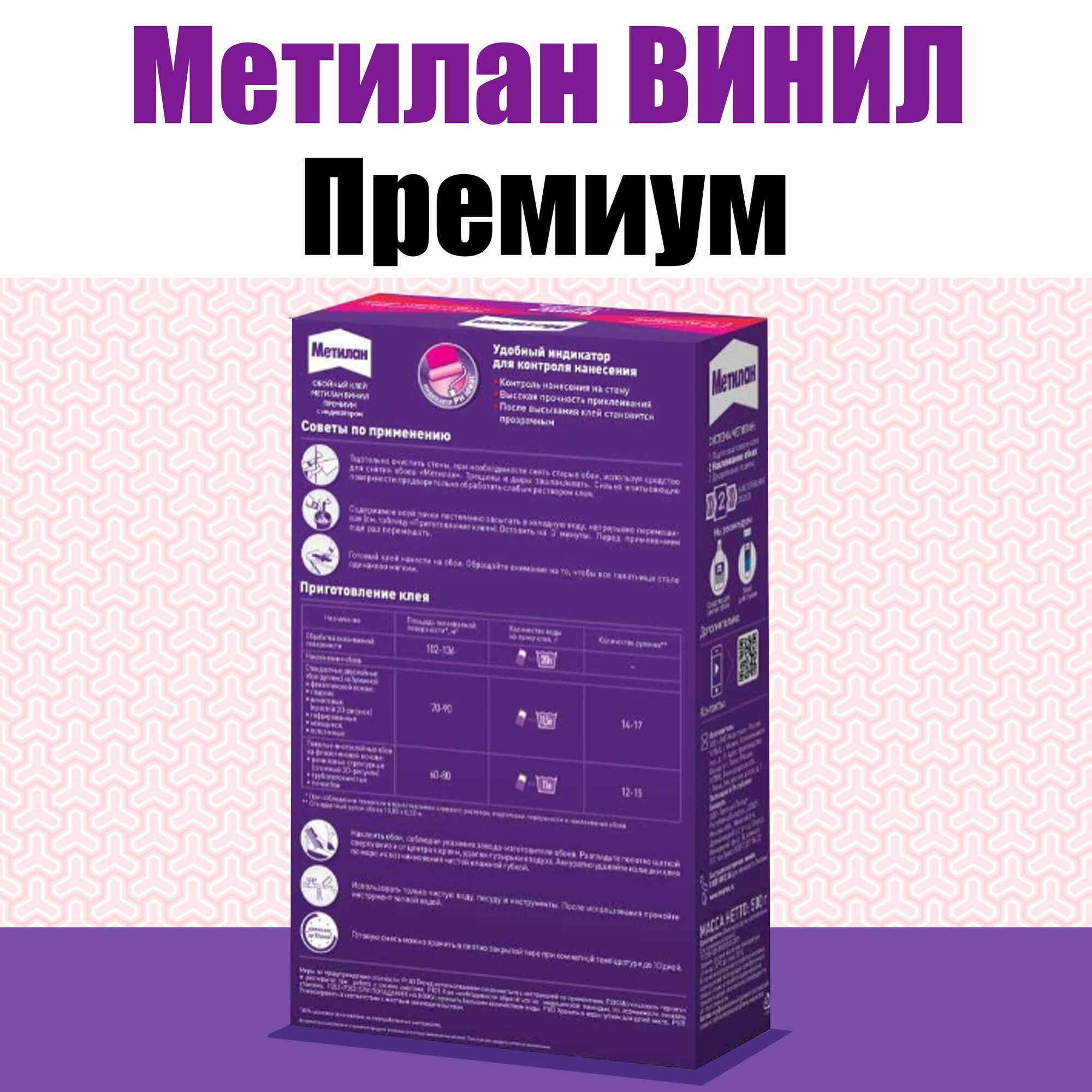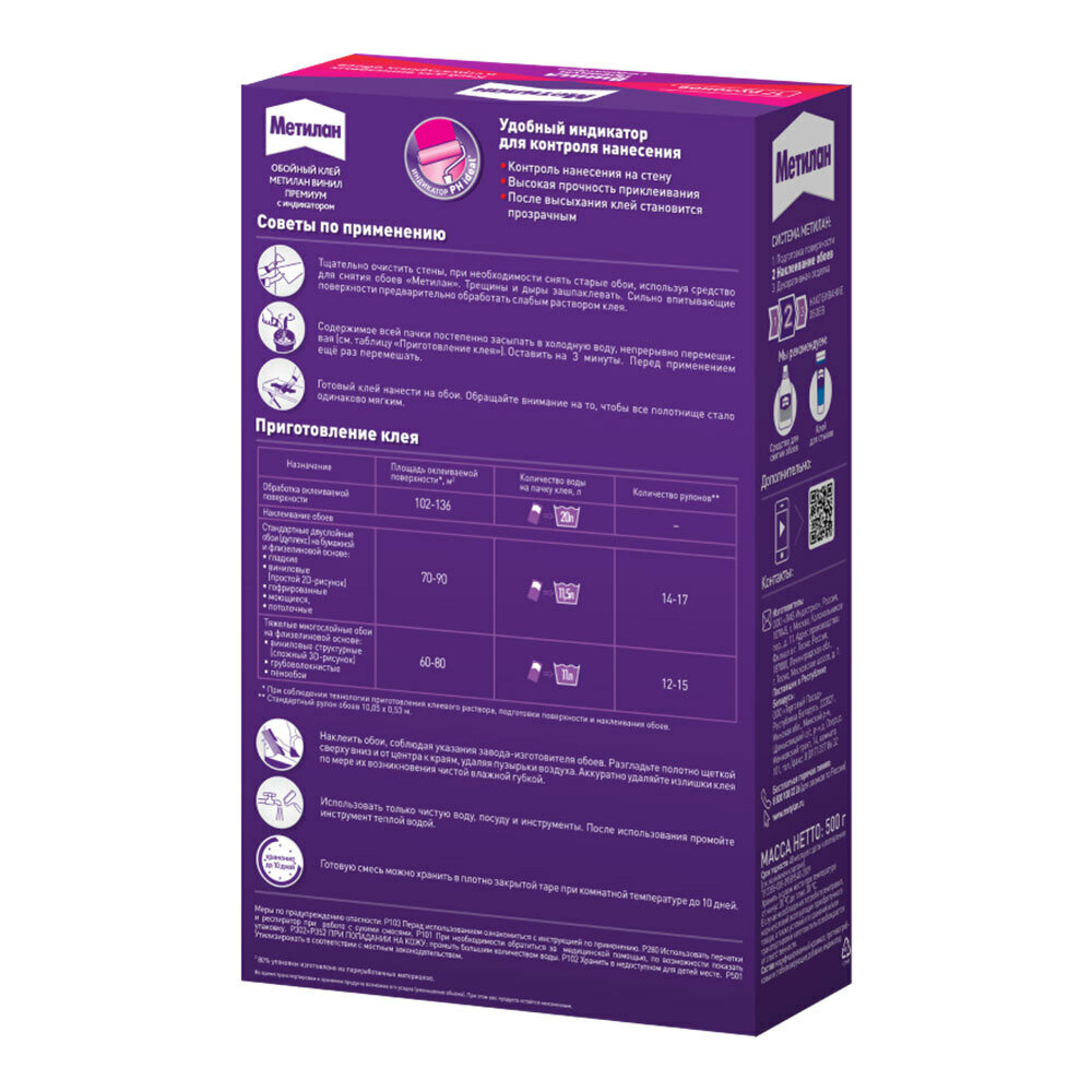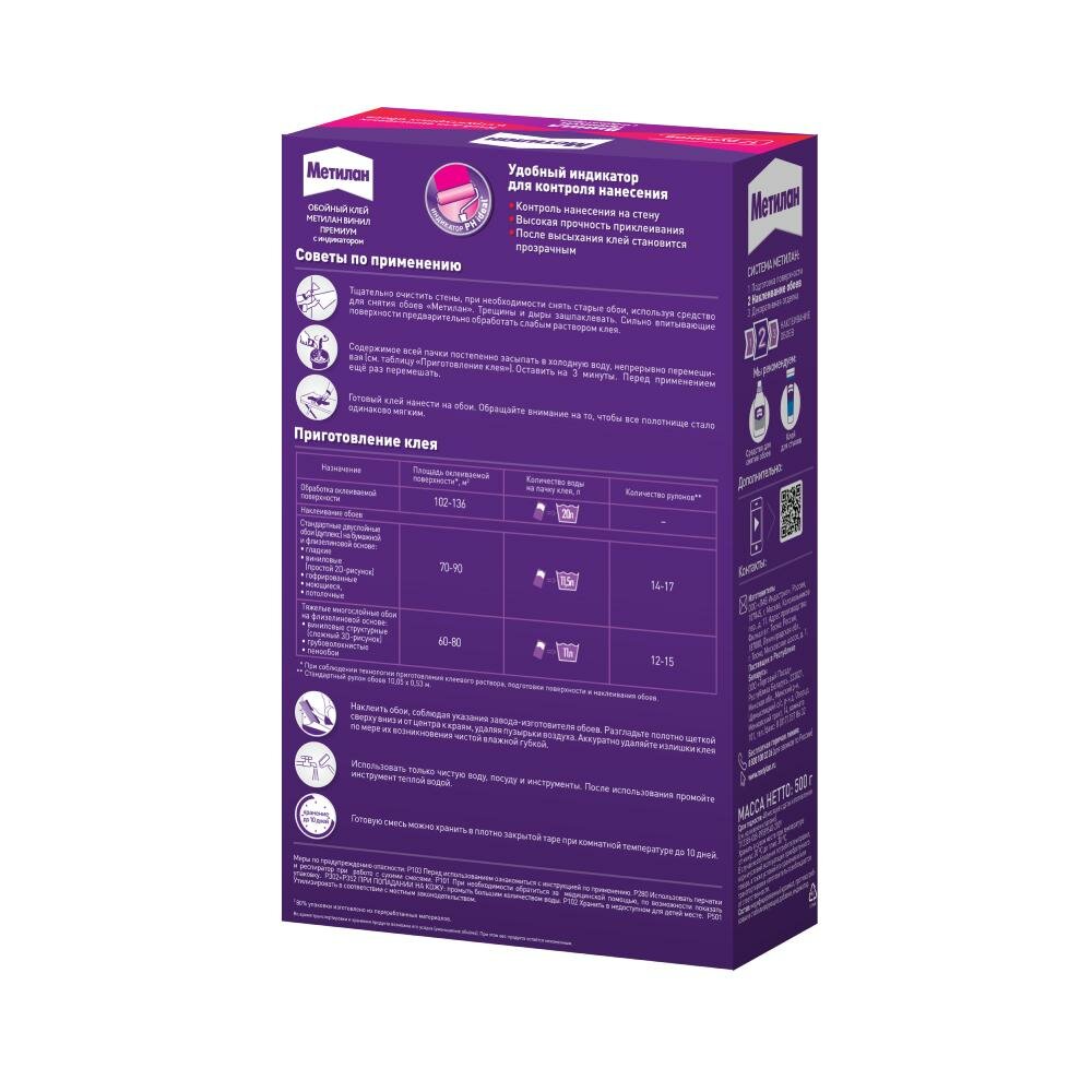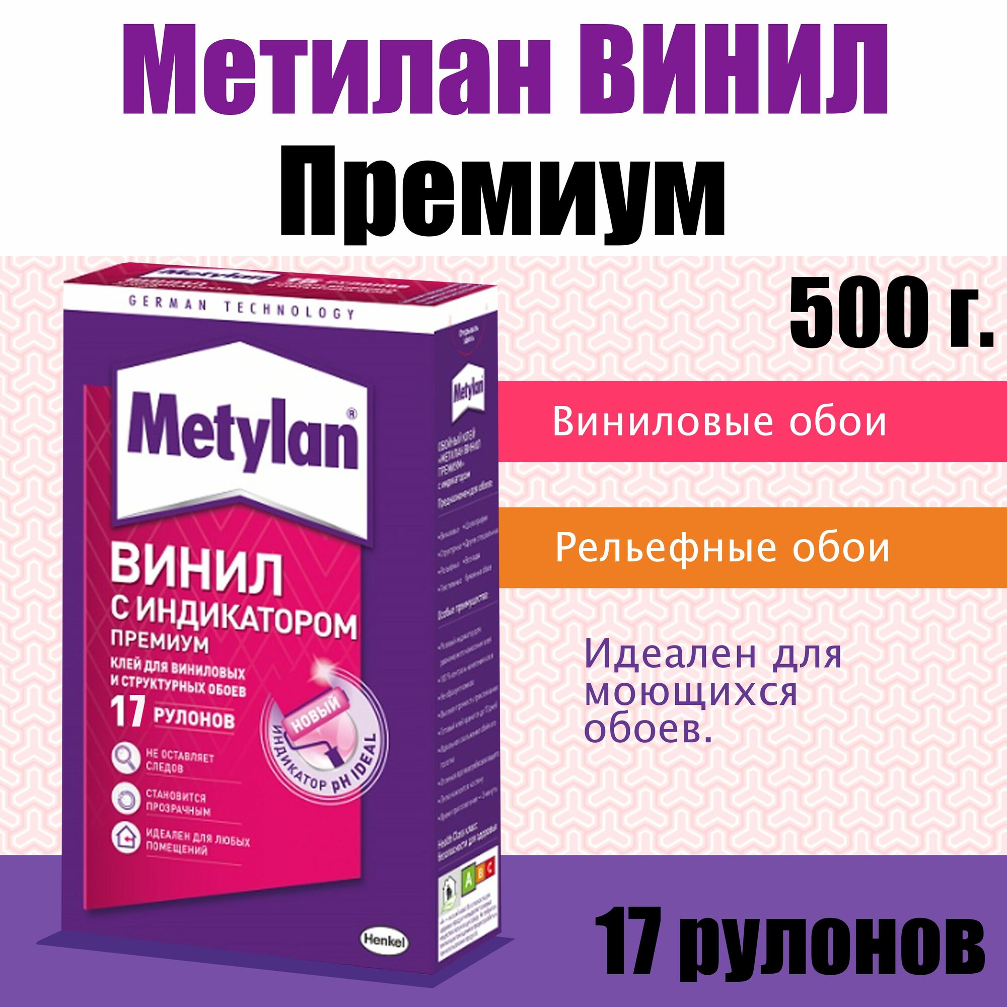 Метилан Винил Премиум с индикатором клей обойный (500г) / METYLAN Винил Премиум с индикатором клей для виниловых обоев (0,5кг)