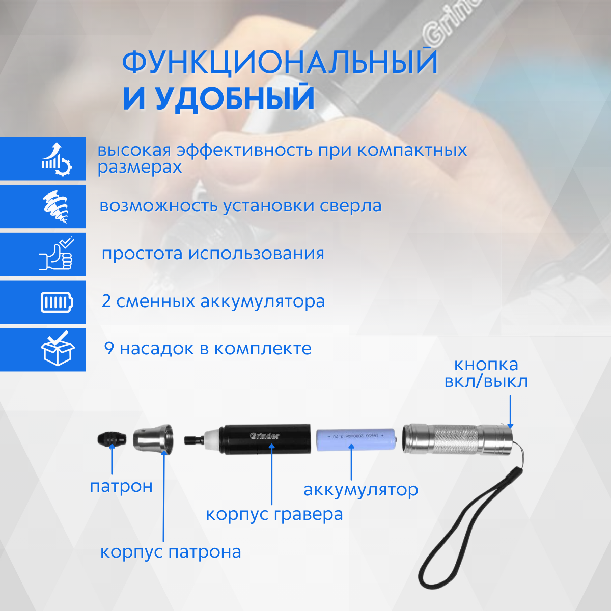 Гравер беспроводной аккумуляторный/ мини гравер/ шлифовальная мини машинка интересное: