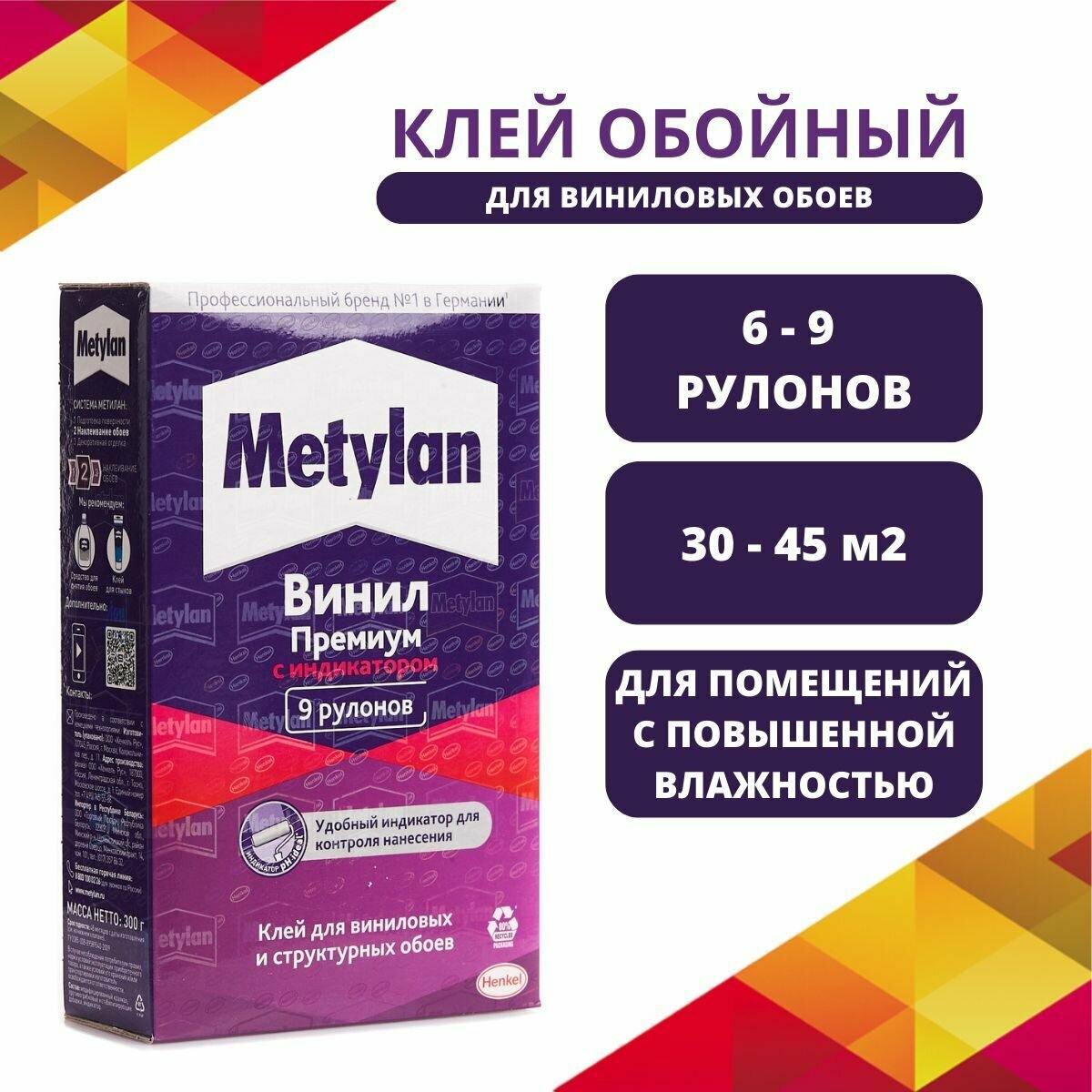 Метилан Винил Премиум с индикатором клей обойный (300г) / METYLAN Винил Премиум с индикатором клей для виниловых обоев (0,3кг)
