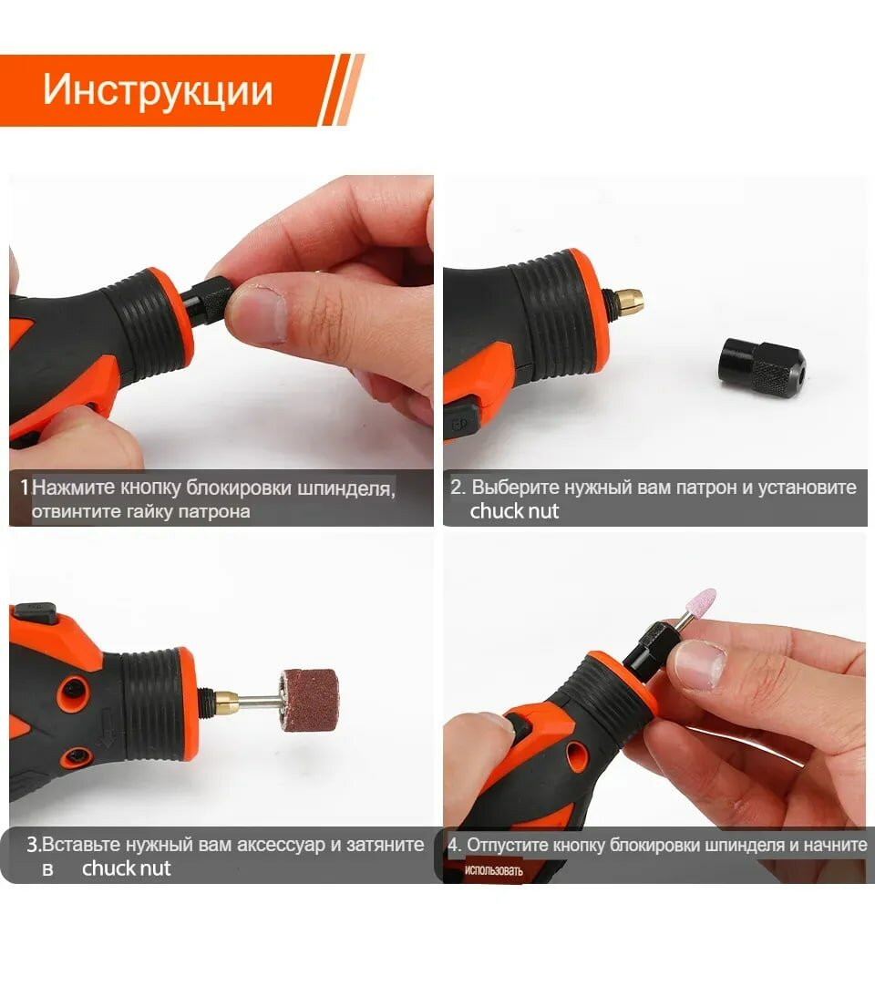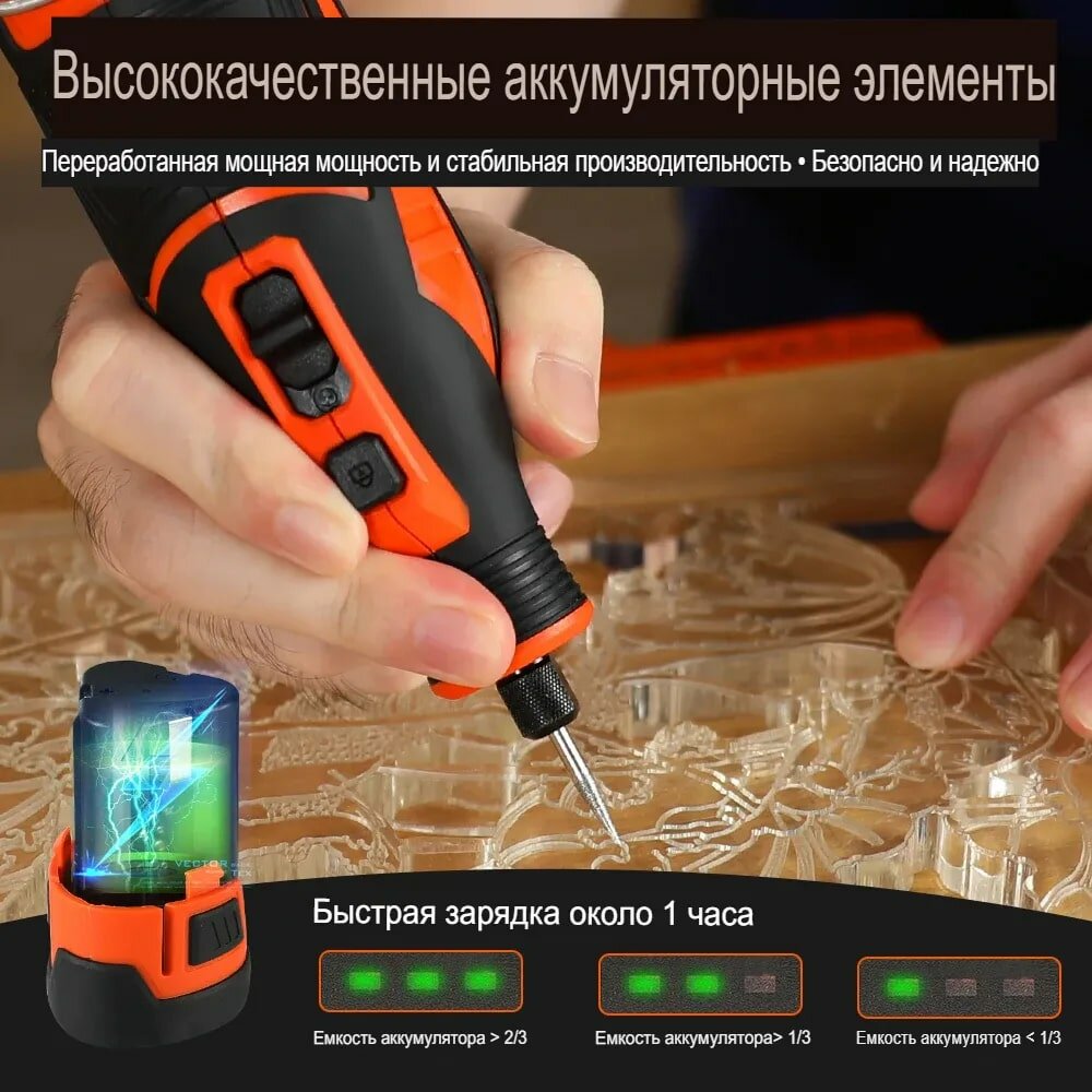 Гравер аккумуляторный для полировки, шлифовки, гравировки ValueMax, 12V, 5 скоростей + набор из 105 насадок интересное:
