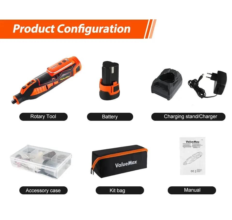 Купить Гравер аккумуляторный ValueMax для полировки, шлифовки, гравировки , 12V, 5 скоростей + набор из 105 насадок