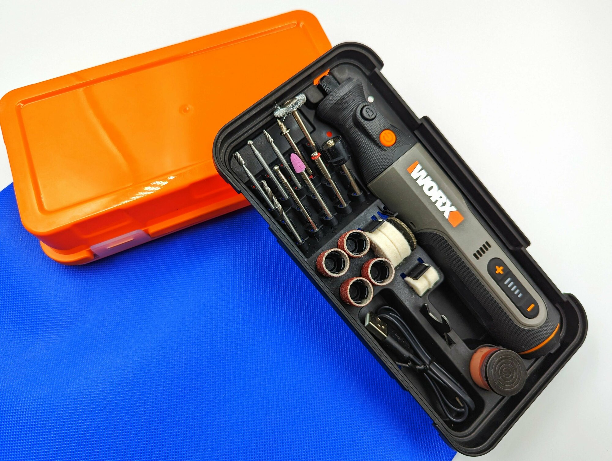 Беспроводной Мощный Гравер 64W Worx 8В модель WX106 - в кейсе с аксессуарами, для полировки, резки, сверления интересное: