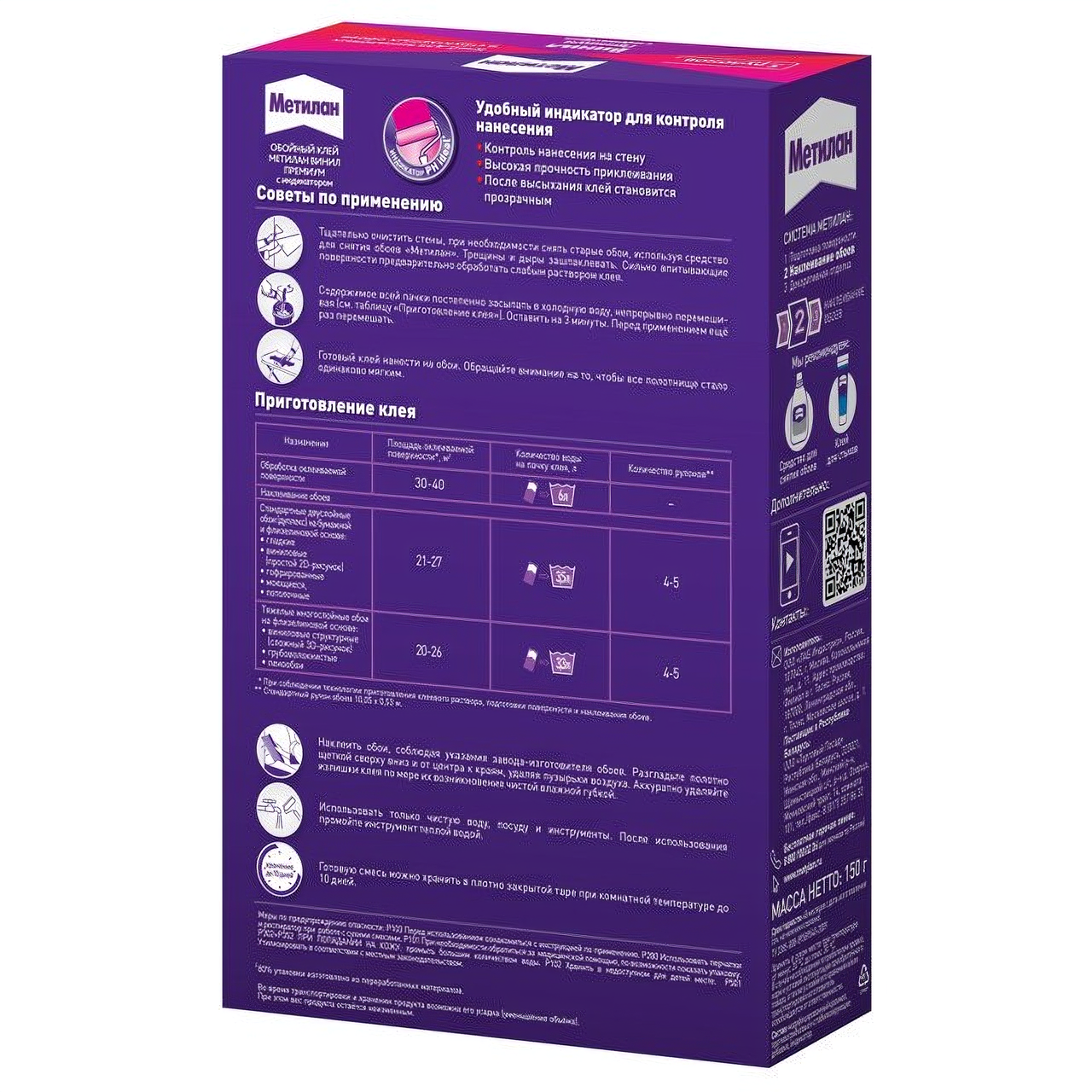 Метилан Винил Премиум с индикатором клей обойный (150г) / METYLAN Винил Премиум с индикатором клей для виниловых обоев (0,15кг)
