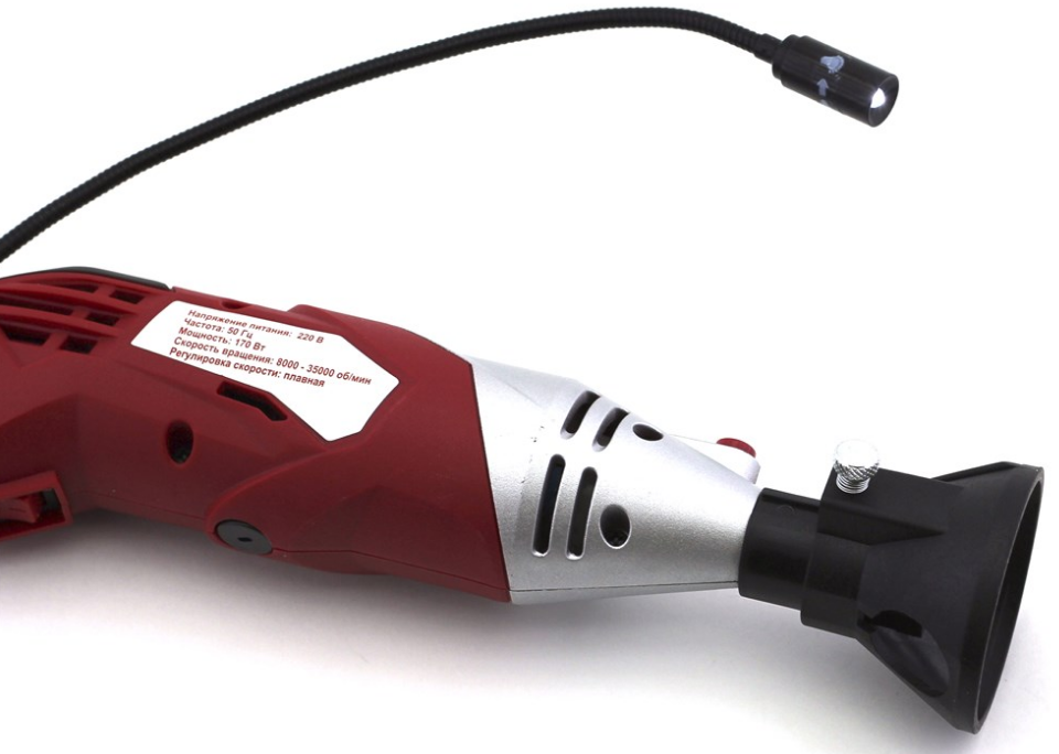 10373J Бормашина 170 Вт, 8000-35000 об/мин., гибкий вал, стойка, ограничитель, подсветка, принадлежности 126 пред., кейс интересное: