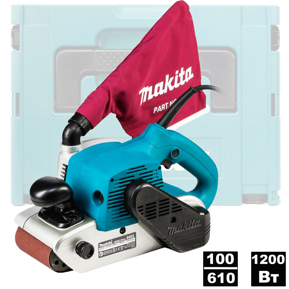 Ленточная шлифмашина Makita 9403J (1200 Вт, система удаления пыли, пылесборник, кейс)