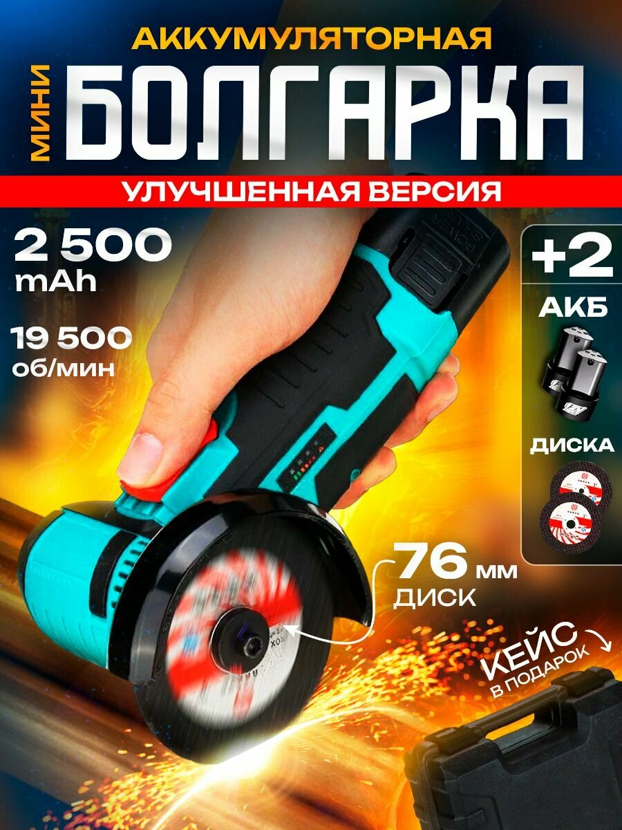 Аккумуляторная мини-ушм с двумя аккумуляторами в кейсе 12 В интересное: