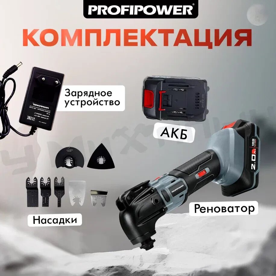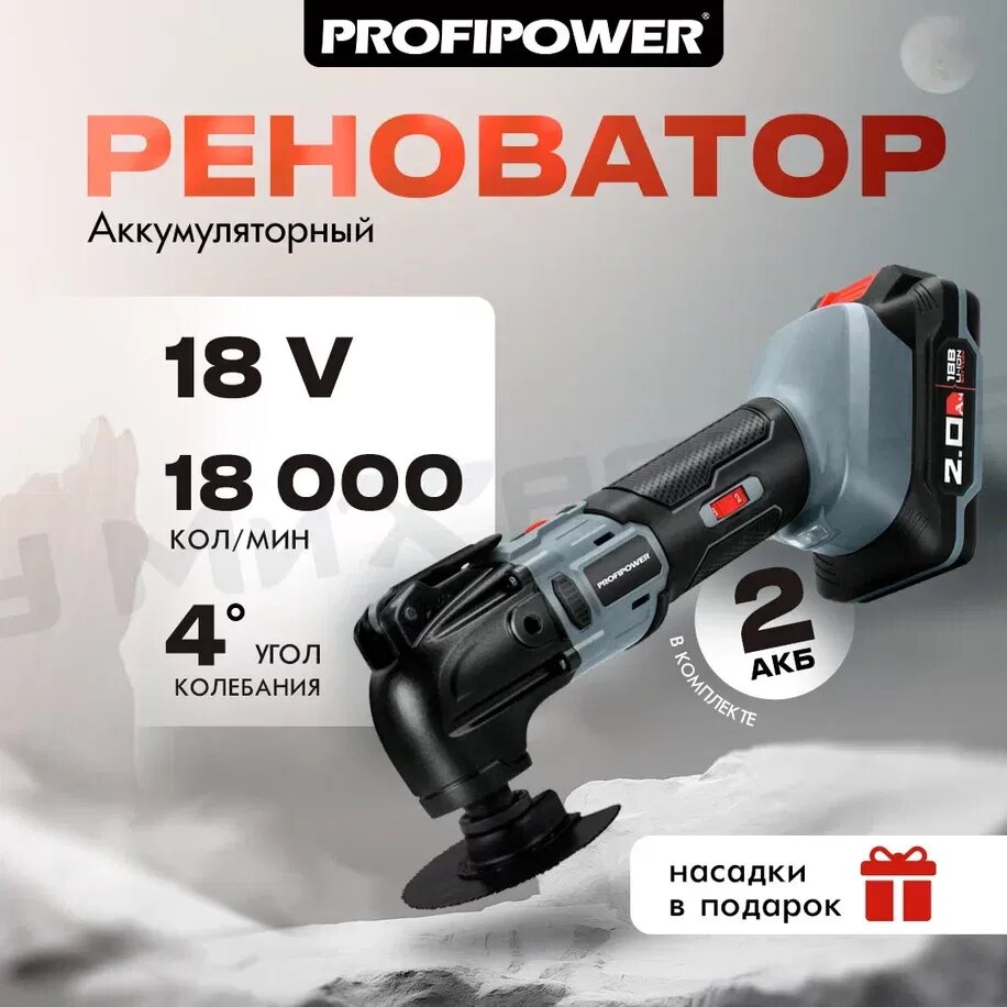 Аккумуляторный реноватор ProfiPower MKDTM-18V 2шт, 2.0 Ач, 18000 кол/мин, 4,0. насадок 6 шт, З/У, коробка интересное: