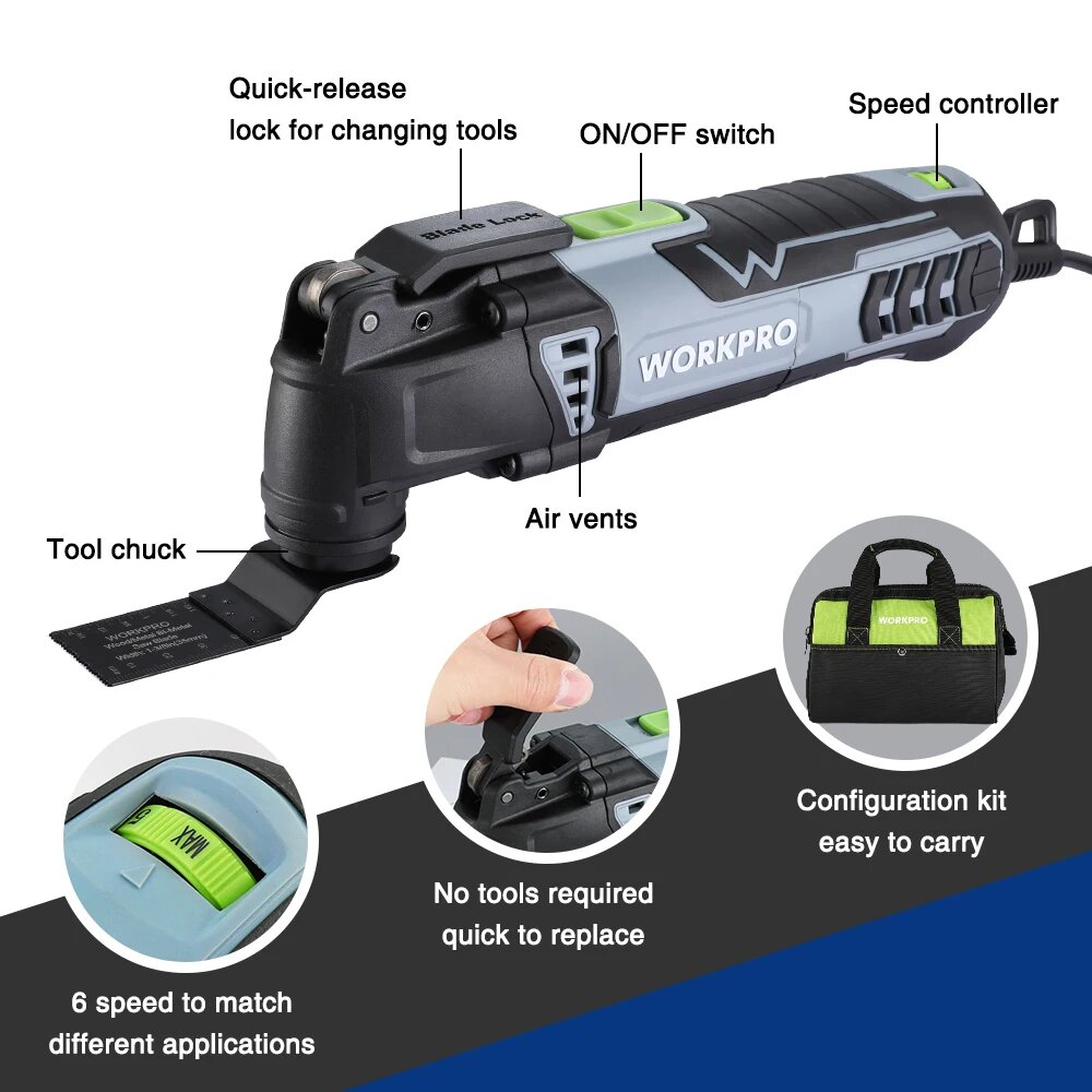 Реноватор "WORKPRO" с набором оснастки интересное: