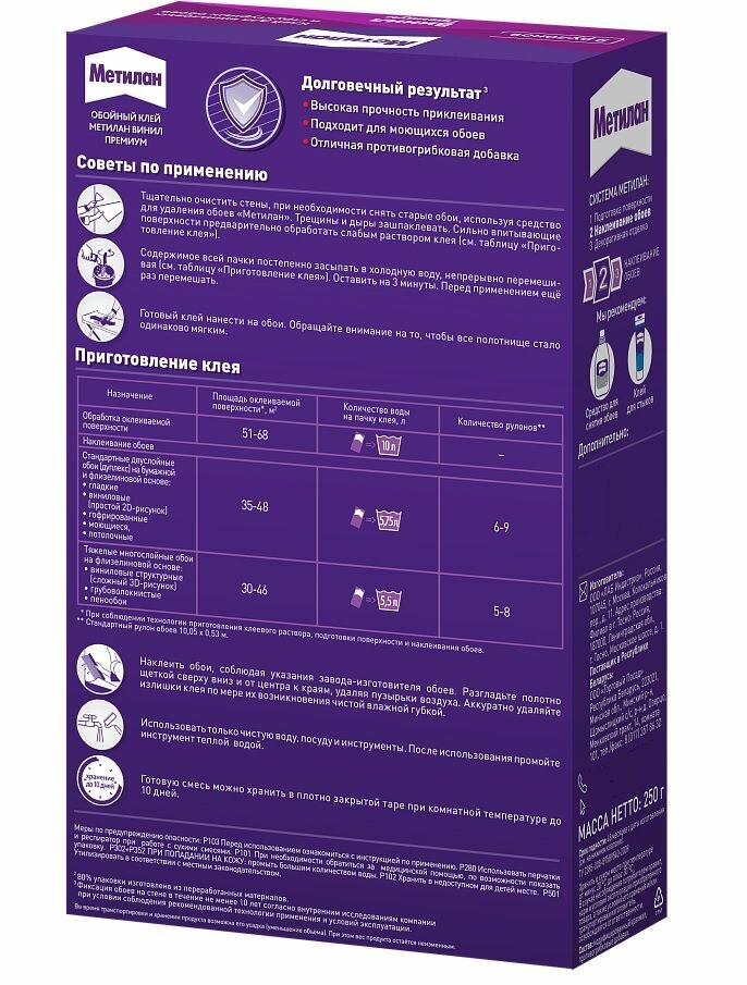 Metylan Клей для обоев Винил, премиум, без индикатора, 250 г