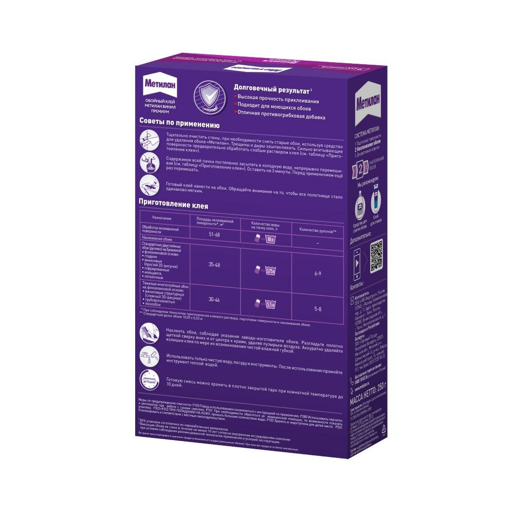 Метилан Винил Премиум без индикатора клей обойный (500г) / METYLAN Винил Премиум без индикатора клей для виниловых обоев (0,5кг)