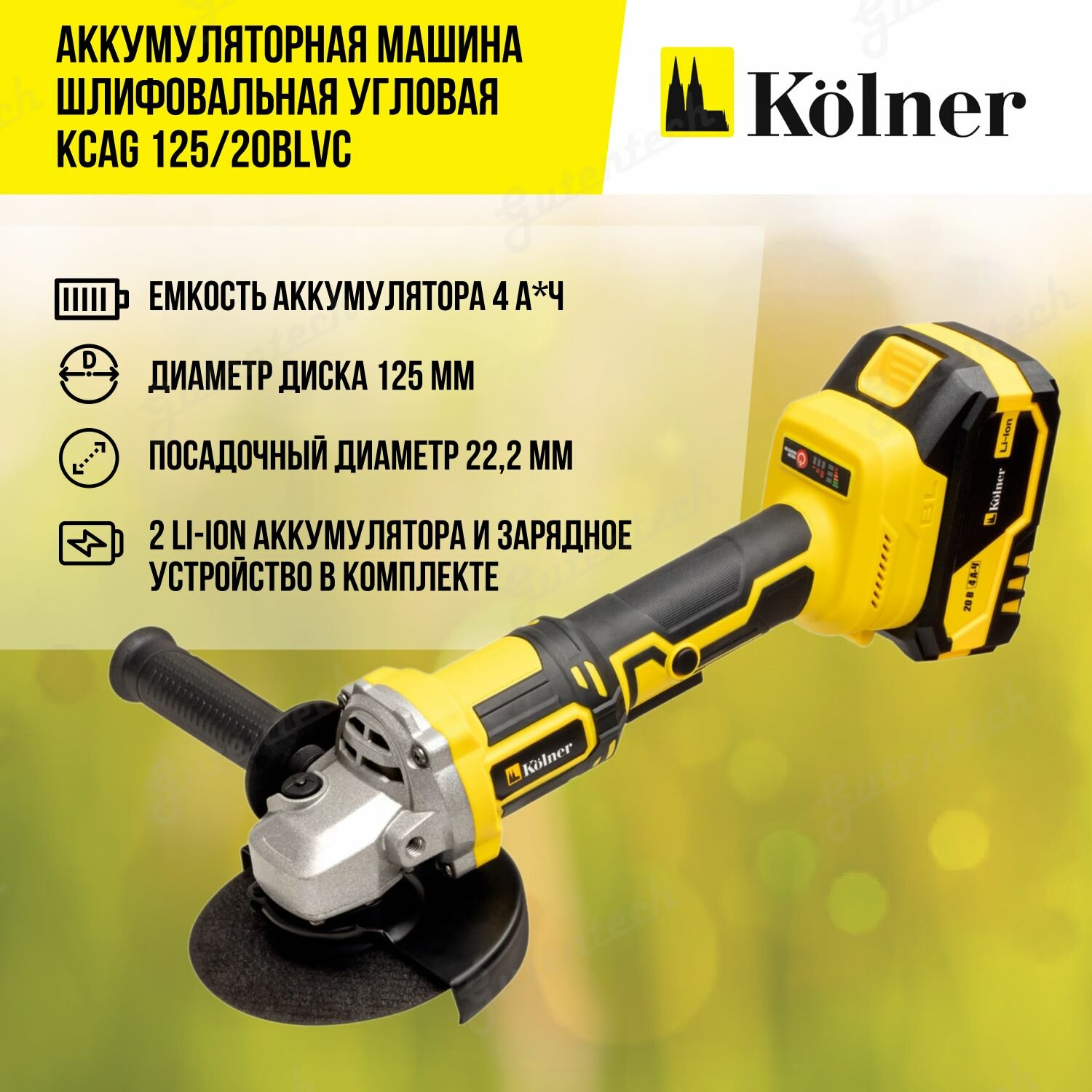 Машина шлифовальная угловая аккумуляторная Kolner KCAG 125/20BLVC интересное: