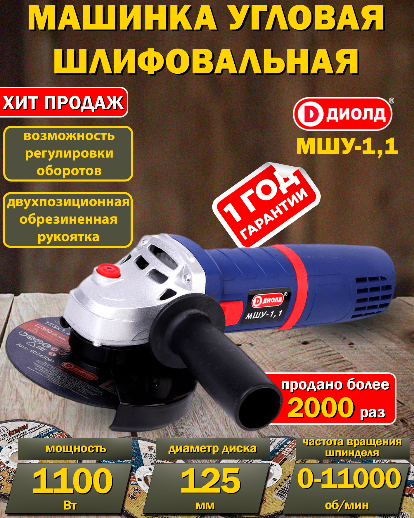 Угловая шлифовальная машина (болгарка, УШМ, шлифмашина), 1100Ватт, 125мм, регулировка оборотов интересное: